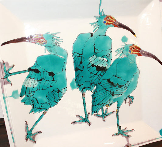 26190 武腰潤 鴇(トキ)の絵皿 (「昔日」2002年日本伝統工芸展 朝日新聞社賞受賞) TAKEGOSHI Jun