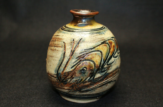 26257 人間国宝 金城次郎 壼屋焼徳利(海老魚紋) KINJO Jiro