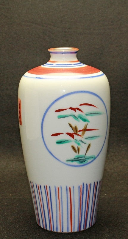 24909 人間国宝 富本憲吉 (色繪梅竹瓶(昭和27年)) TOMIMOTO Kenkichi