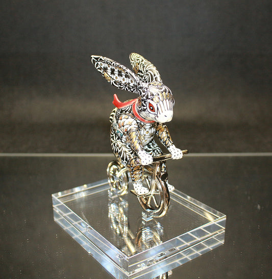 26296 北村和義 線描色絵金彩 「ウサギのお出かけ」 KITAMURA Kazuyoshi