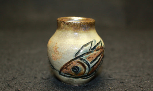 26116 人間国宝 金城次郎 小壷(魚文) KINJYO Jiro
