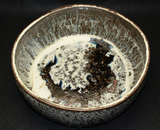 26193 人間国宝 浜田庄司 塩釉藍差櫛目茶盌(晋作識) HAMADA Syoji