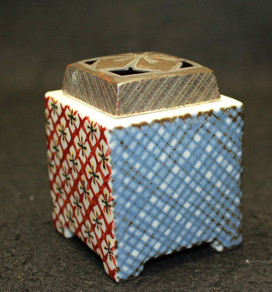 25383 人間国宝 富本憲吉 (色繪角香爐 (昭和18年)) TOMIMOTO Kenkichi