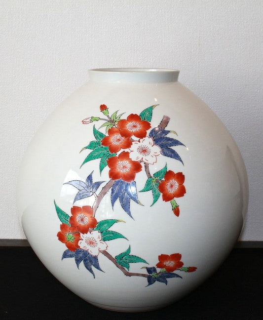 24582 人間国宝 14代酒井田柿右衛門 (濁手紅葉文花瓶) SAKAIDA Kakiemon