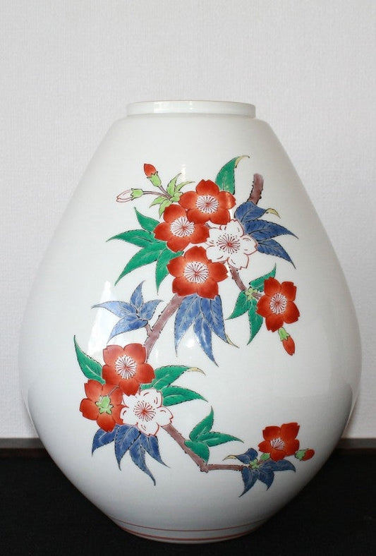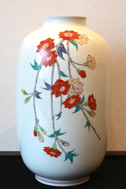 24290 人間国宝 14代酒井田柿右衛門 (濁手山つつじ文花瓶) SAKAIDA Kakiemon