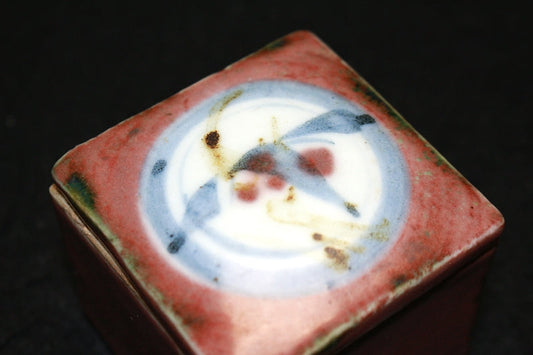 25411 人間国宝 島岡達三(象嵌赤繪盒子) SHIMAOKA Tatsuzo