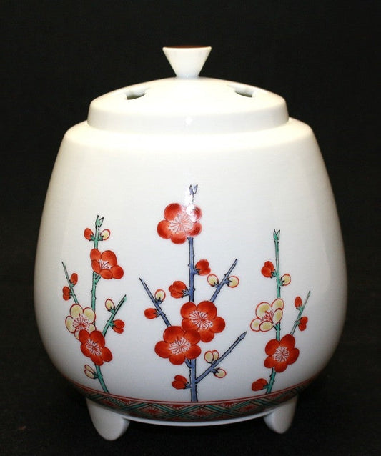 24549 人間国宝 14代酒井田柿右衛門 (濁手三方割山つつじ文香炉)