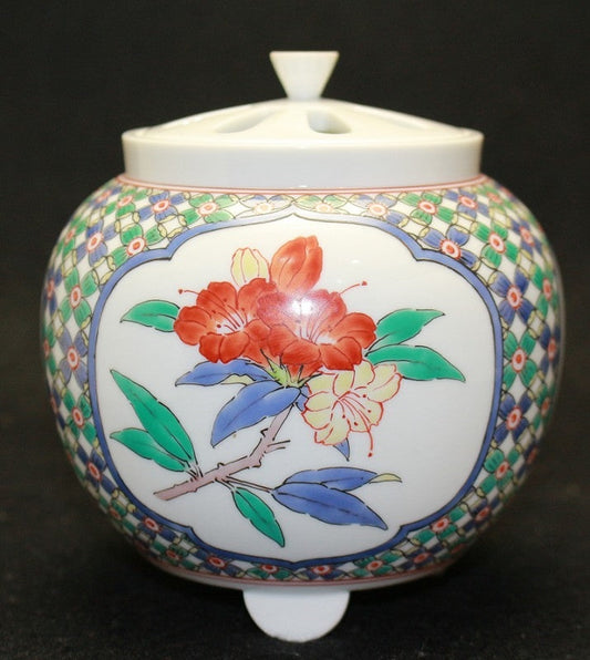 26173 13代酒井田柿右衛門 濁手山吹文香爐
