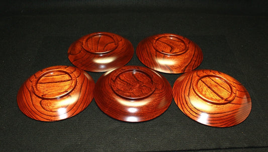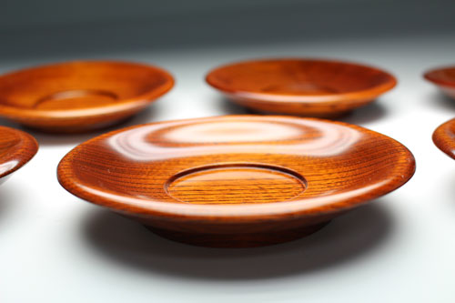 25665 人間国宝 黒田辰秋 拭漆﨔(ケヤキ)茶托(5枚)① KURODA Tatsuaki