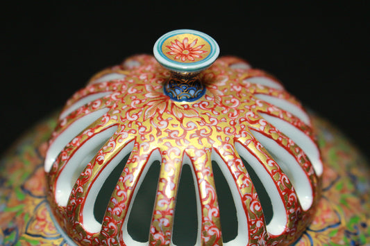 26014 葉山有樹 金彩朱菊花文香炉 HAYAMA Yuki