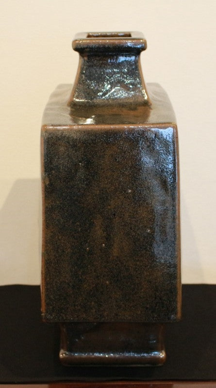 22837 河井寛次郎 (鉄釉扁壷(紅葩識)) KAWAI Kanjiro