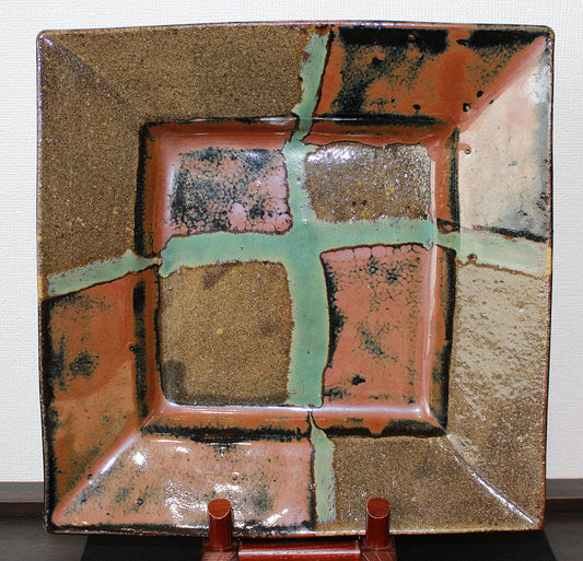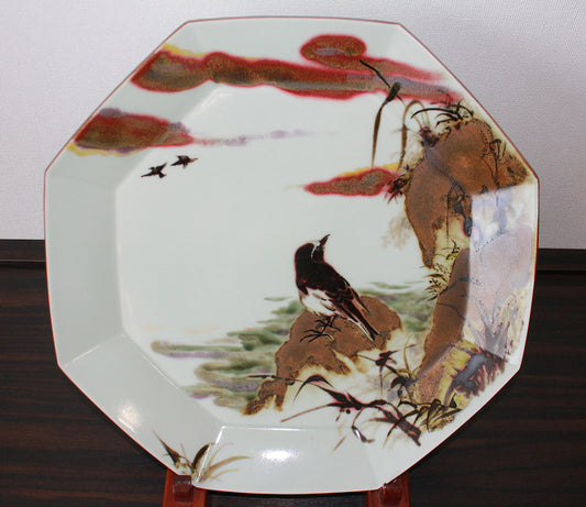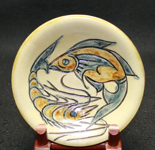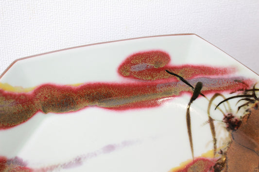 26142 Living National Treasure Jiro Kinjo Plate (Fish and Shrimp Design) KINJO Jiro