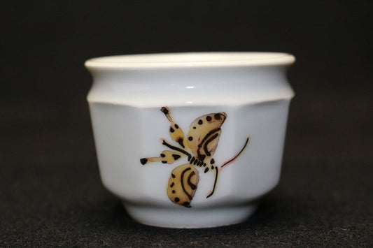 25400 Living National Treasure Fujimoto Nodo (Octagonal dish with peony and small bird design on white glaze and red underglaze)