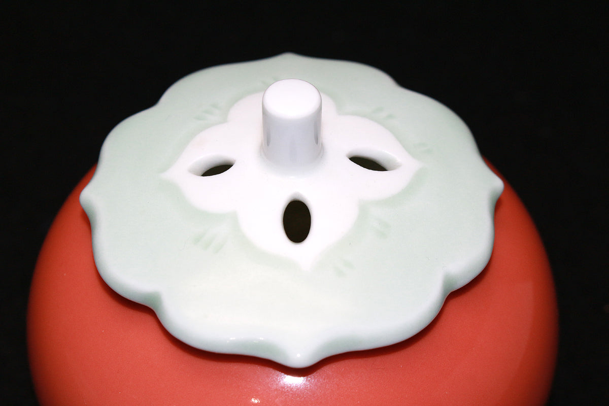 As a leading expert in wheel-throwing, Manji studied the potter's wheel under the 12th generation Sakaida Kakiemon, and has led the way in Arita white porcelain with his outstanding technique and vast experience. In Japanese pottery, it is common to incorporate random elements such as distortion and kiln changes, making these the appeal of the work, but in the case of white porcelain, perfection is required, with not even the slightest imperfection allowed, such as pinholes or impurities, as well as the form. In Arita, a place with a tradition of colored porcelain such as akae and Nabeshima, Manji, who has mastered the all-white world of white porcelain, created this persimmon incense burner to mark his 60th birthday, using the theme color red. Kimori Explanation>