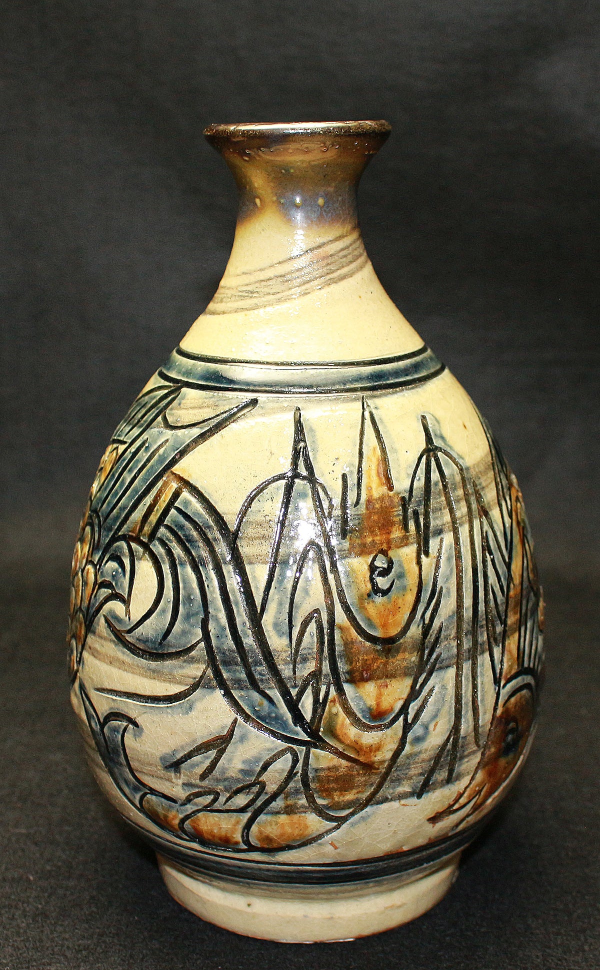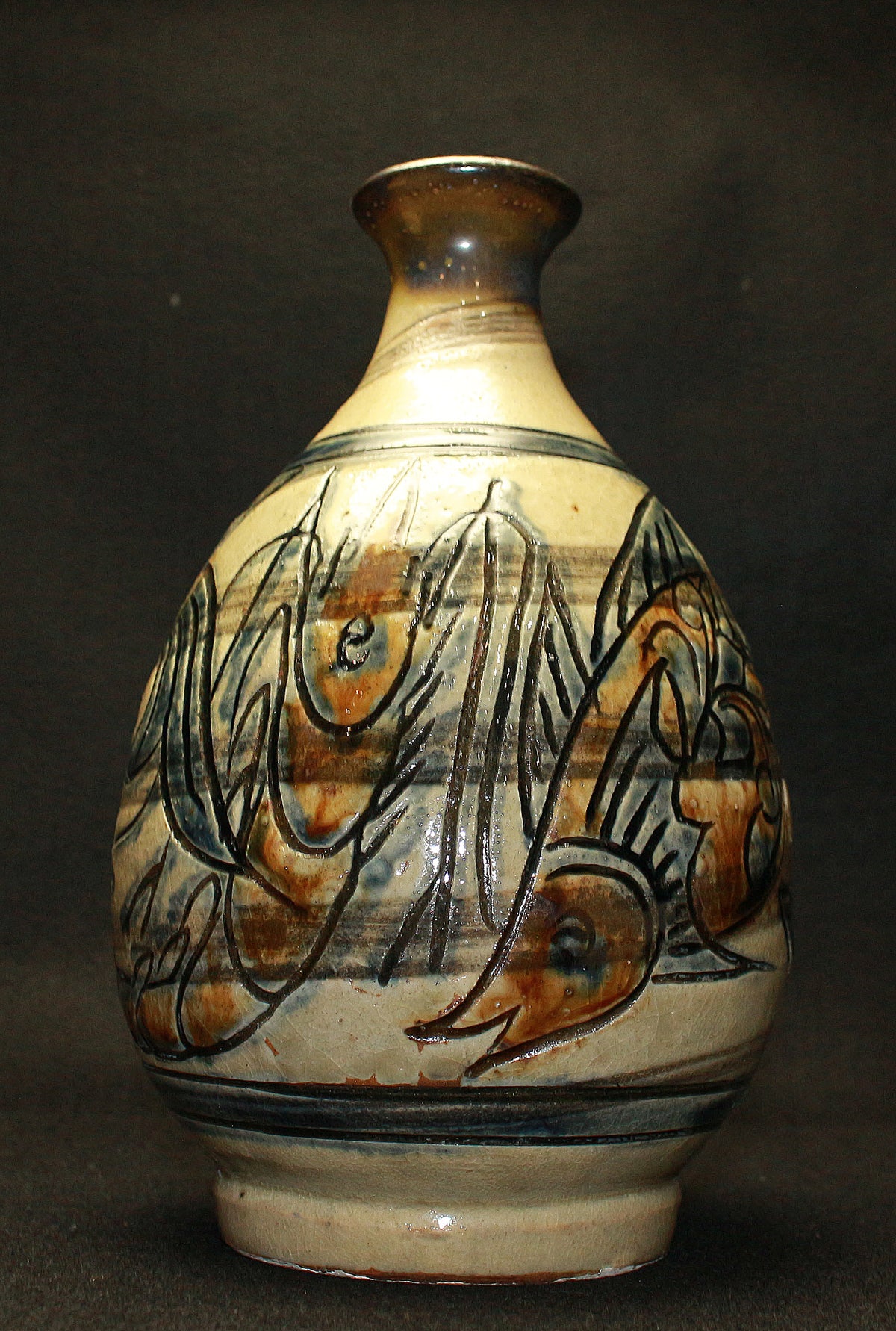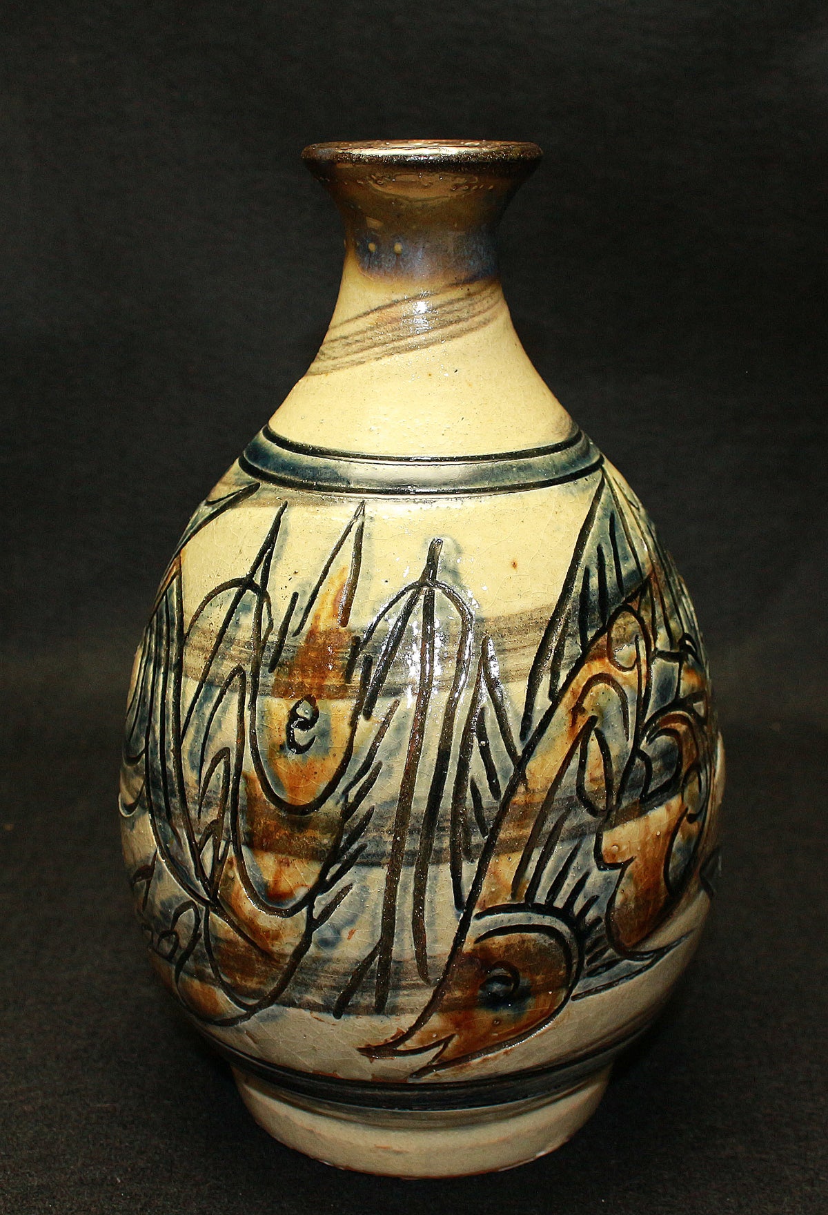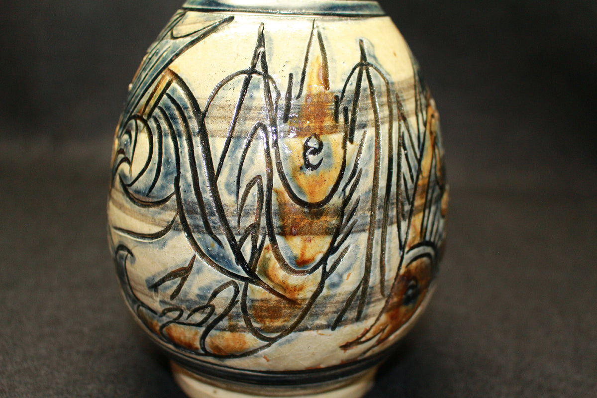 26182 人間国宝 金城次郎 海老魚紋花瓶 Kinjo Jiro