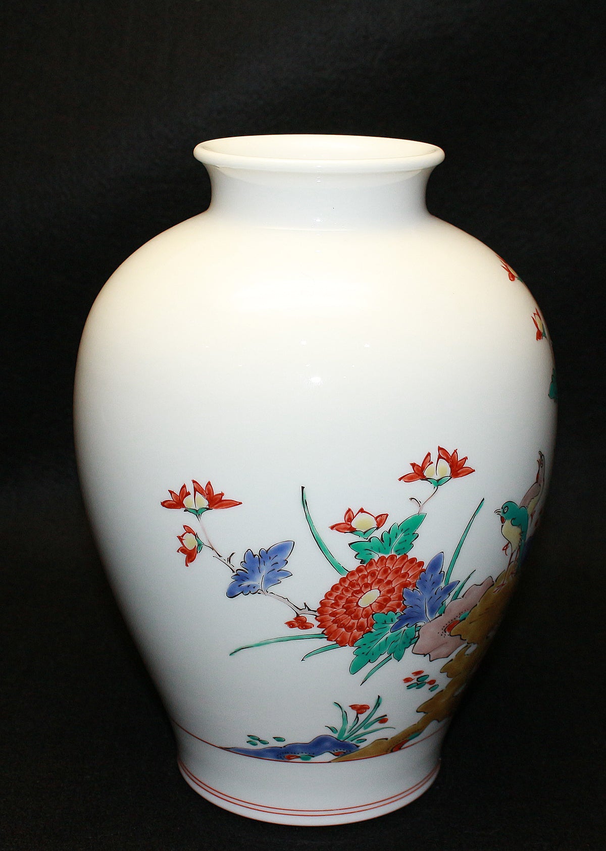26285 Living National Treasure, 14th SAKAIDA Kakiemon Vase with Brocade Bird and Flower Design