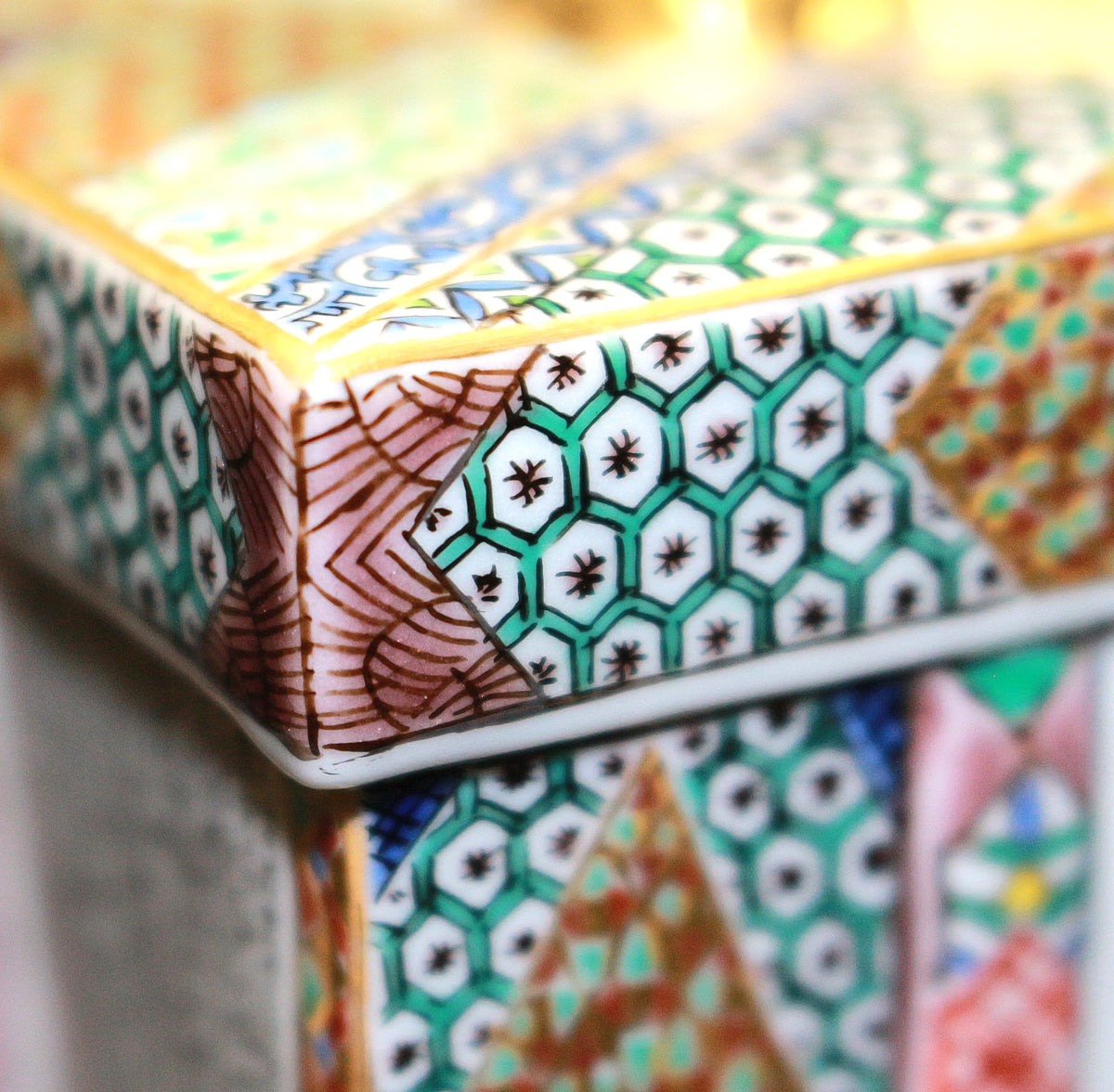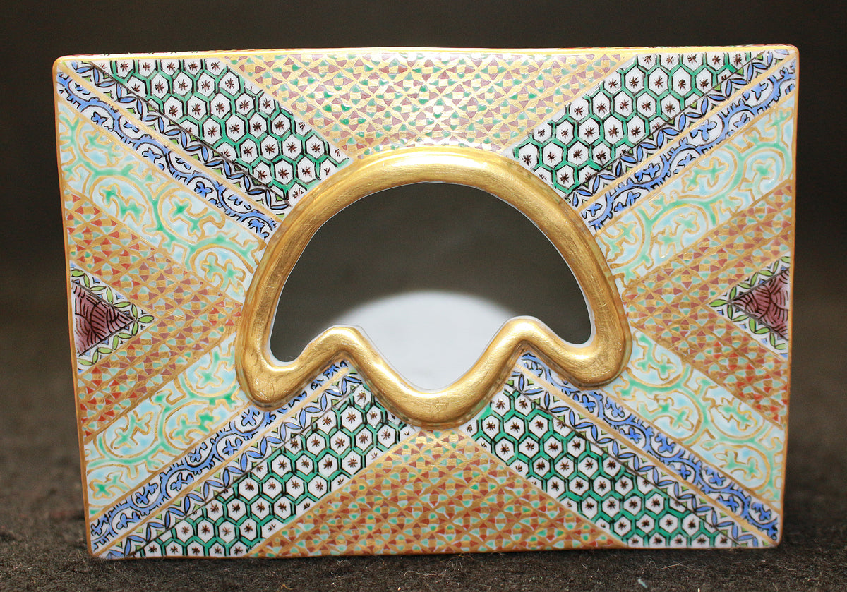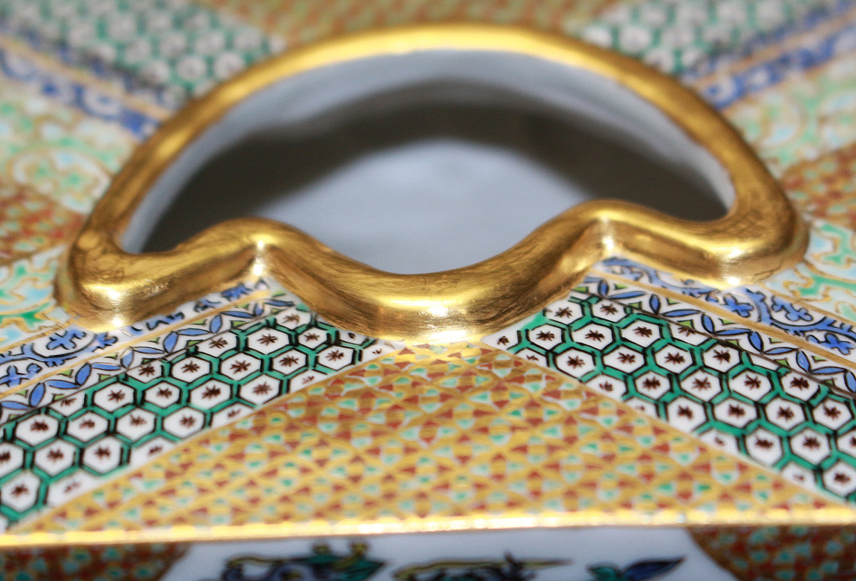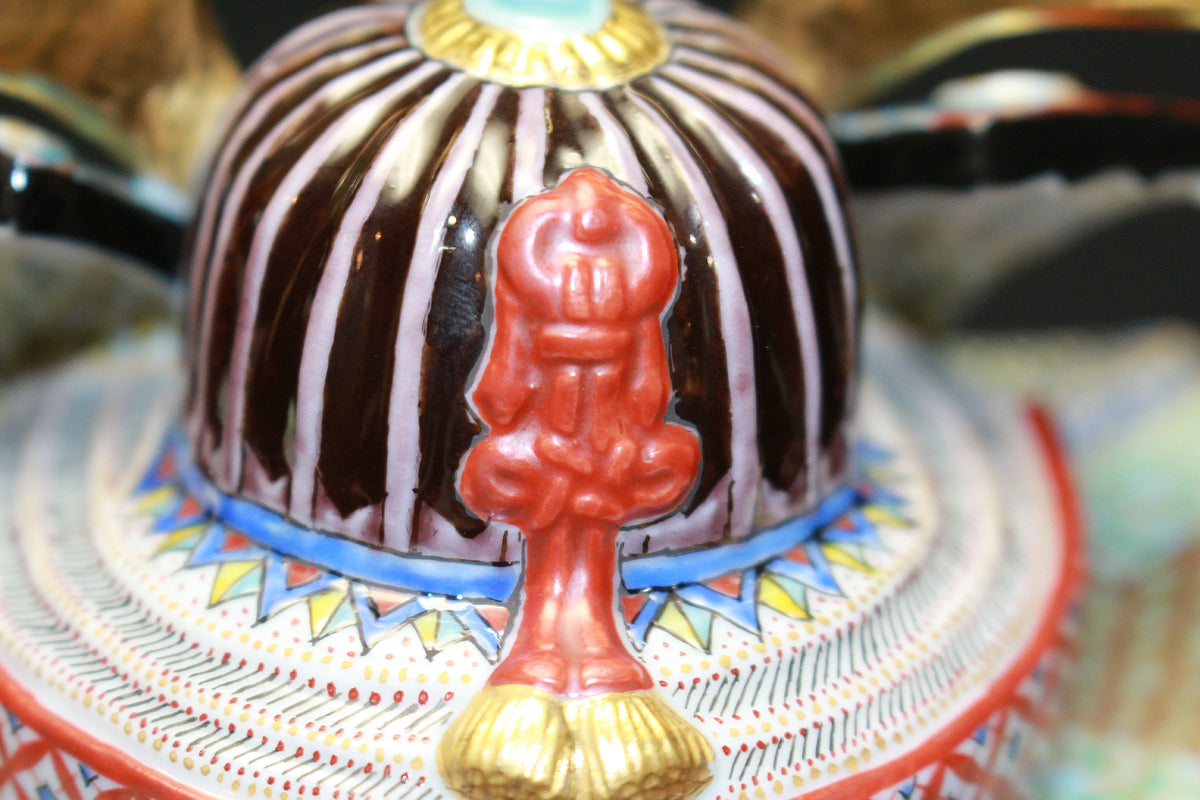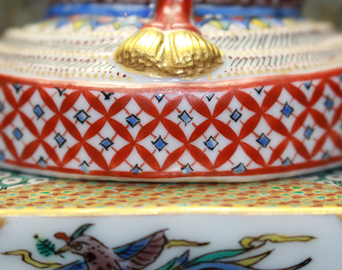 「九谷毛筆細字(さいじ)技法」とは、主に和歌などの古典文学を極細の毛筆で磁器に描き込む技法です。明治以降、九谷焼の繊細な絵付けに見合う表現として石川県の南部地方で独自に発展してきました。現在まで一世紀以上に亘り、田村家に一子相伝の技法として受け継がれています。