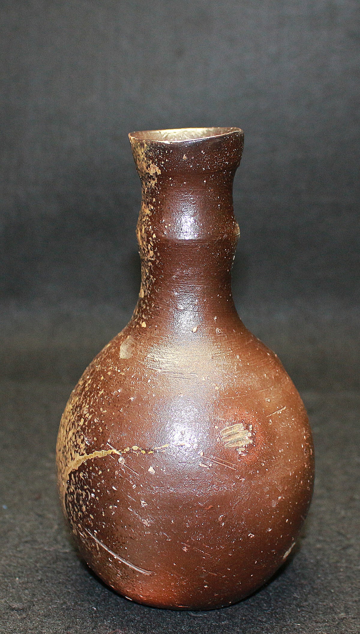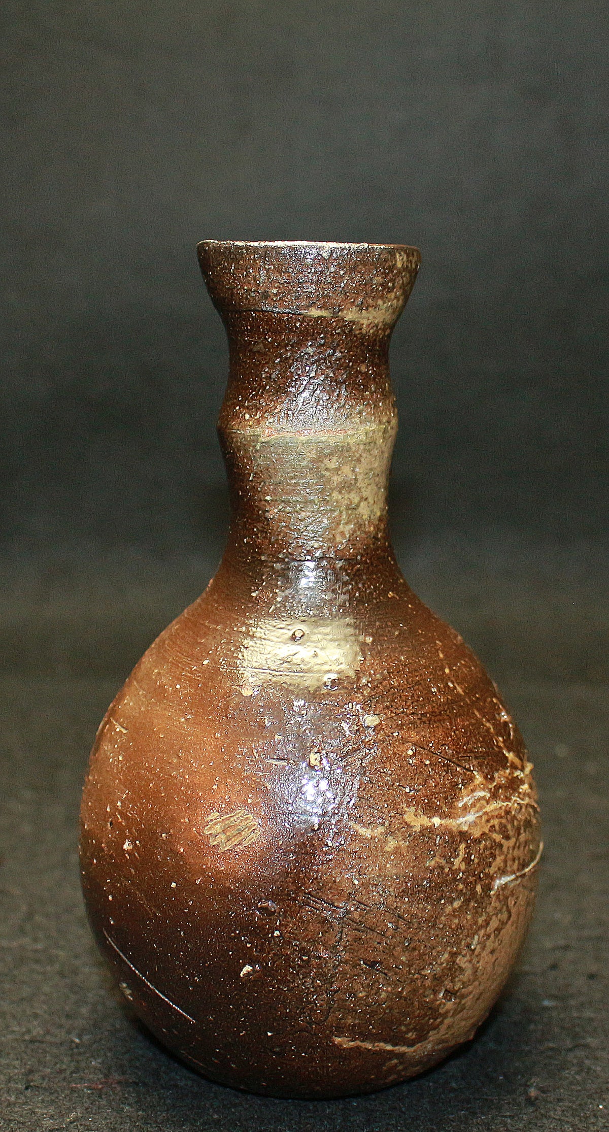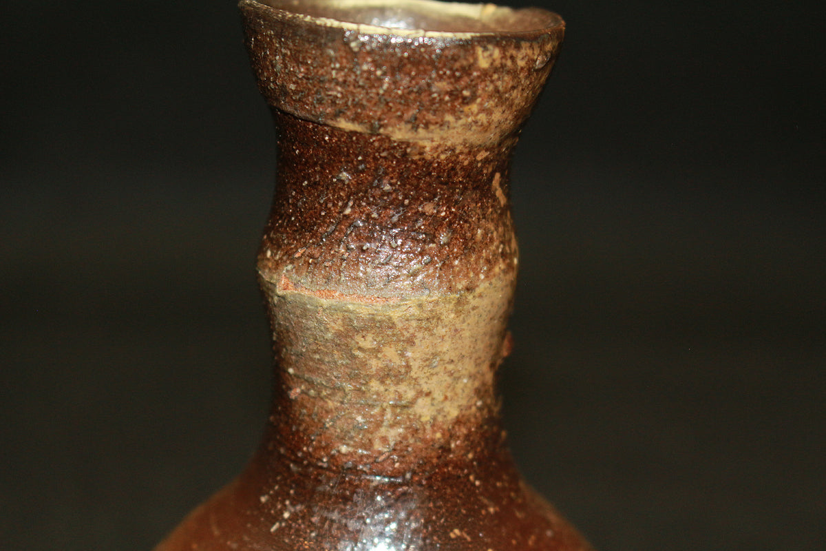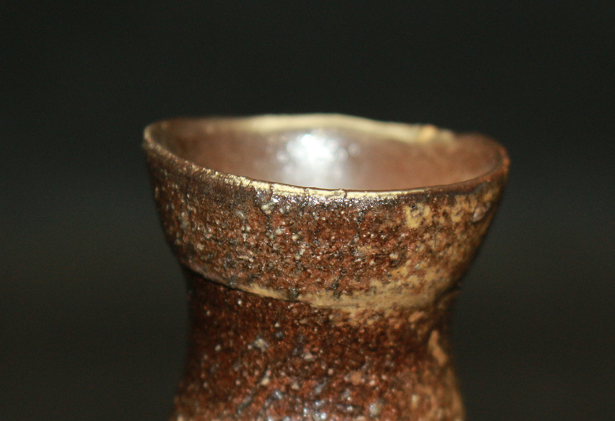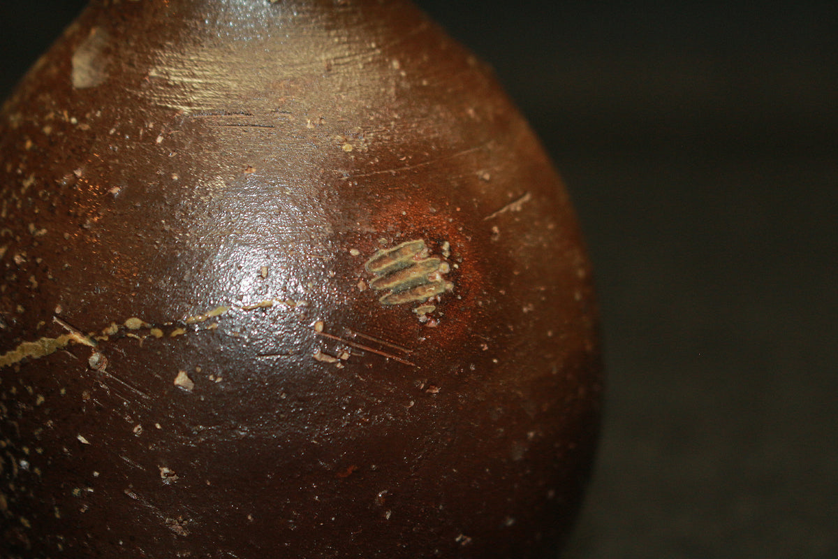 類まれなるセンスと巧みな造形力により備前焼界に新たな風を吹き込む、伊勢崎晃一朗先生の引出黒徳利です。