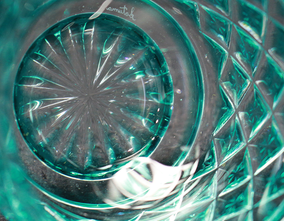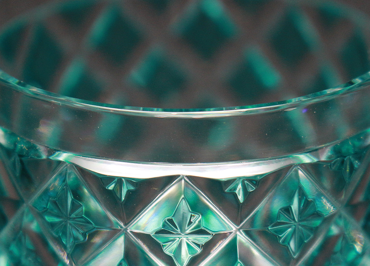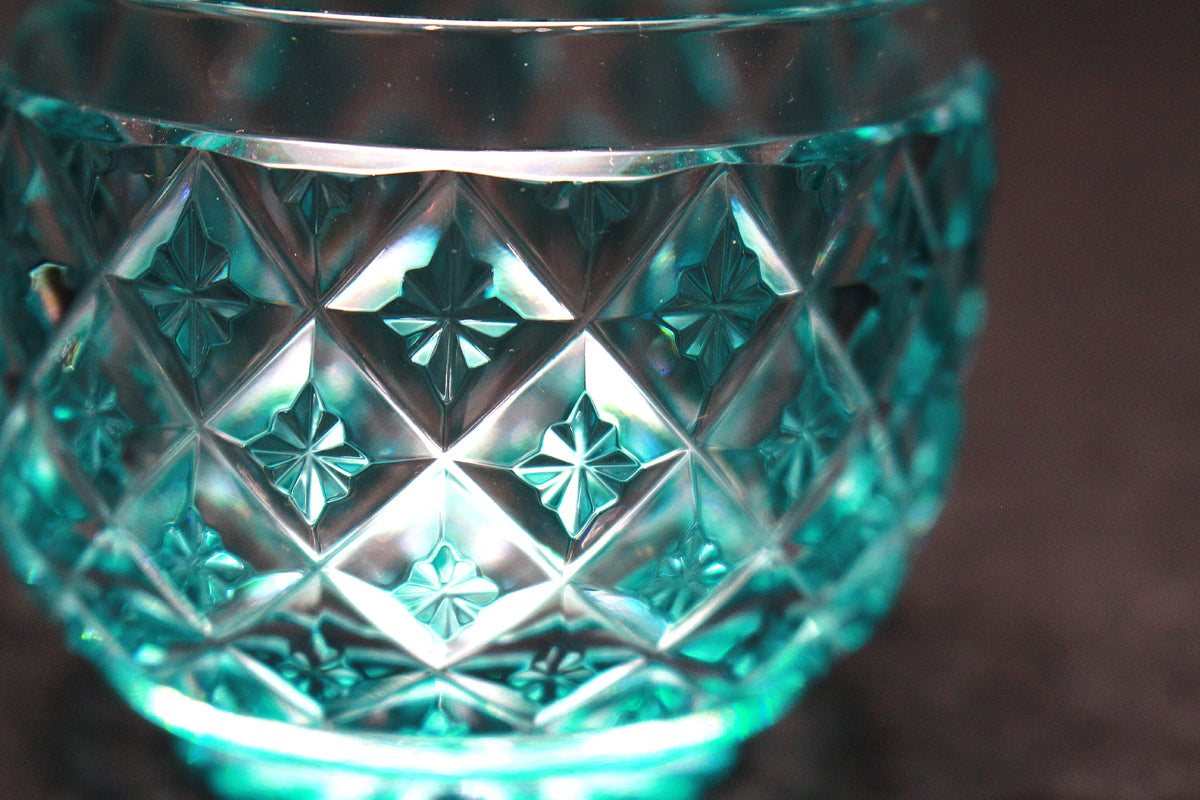 色被せガラスの切子製品は、カットが施されることで、色ガラスと透明ガラスのコントラストが美しく表現されます。特に薩摩切子では、分厚いガラスに深いカットを施し、色のグラデーションを楽しむことができるのが特徴です。