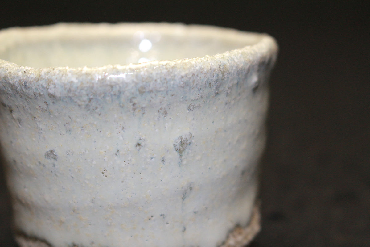 自然坊の斑唐津(まだらからつ)は、ざっくりとした土に白濁した釉薬が溶け込み、斑(まだら)状になっている唐津焼の様式を指します。茶碗やぐい呑みが特に人気があります。古唐津の中でも初期に作られた様式の一つです。