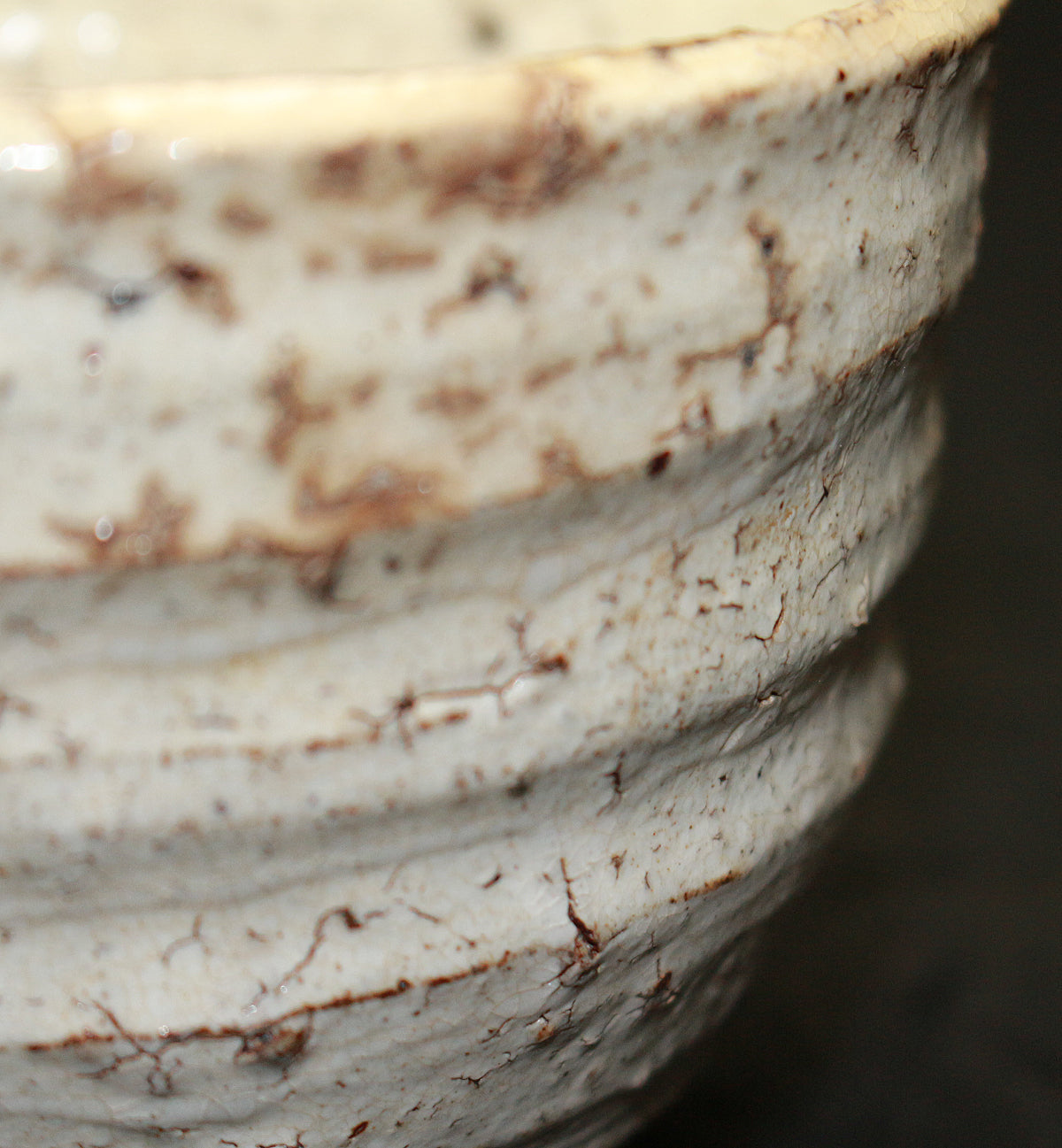 柔らかな白さが印象的で、化粧土のムラや土に含まれる鉄分の点が自然な表情を生み出しています。