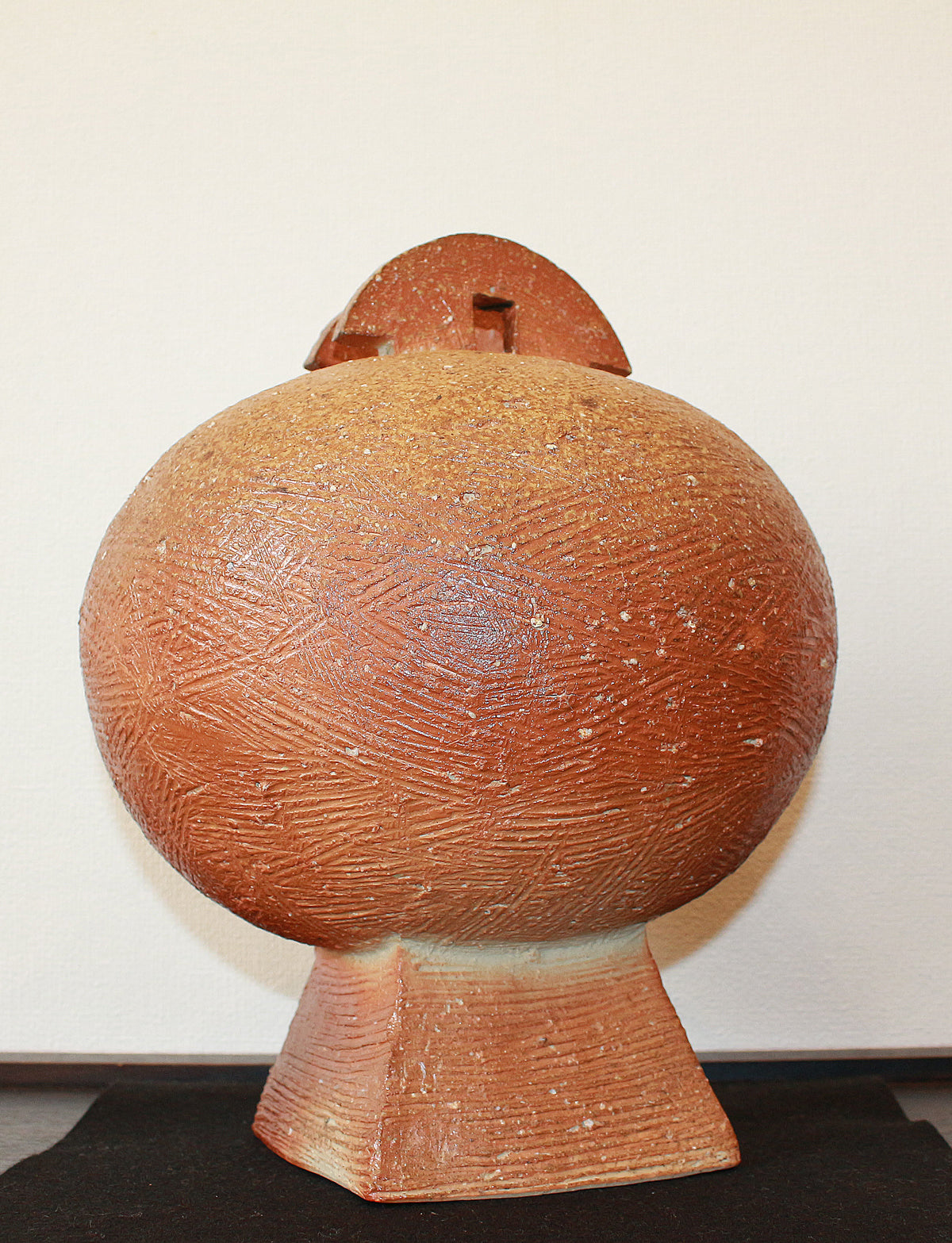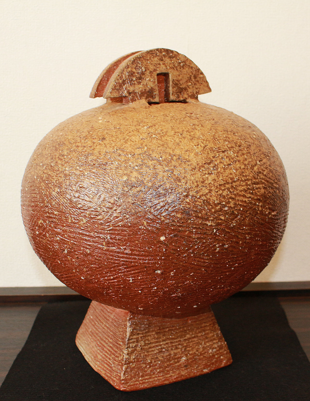 渡辺聡は1959年広島県生まれで、専修大学経済学部を卒業後、1989年に岡山県牛窓・寒風に工房を構えました。1990年には20メートルの半地下式穴窯を築き、岡山天満屋で初の個展を開催しました。岡山県無形文化財である森陶岳に師事した経験もお持ちです。茶の湯造形展での入賞経験も多数あります。