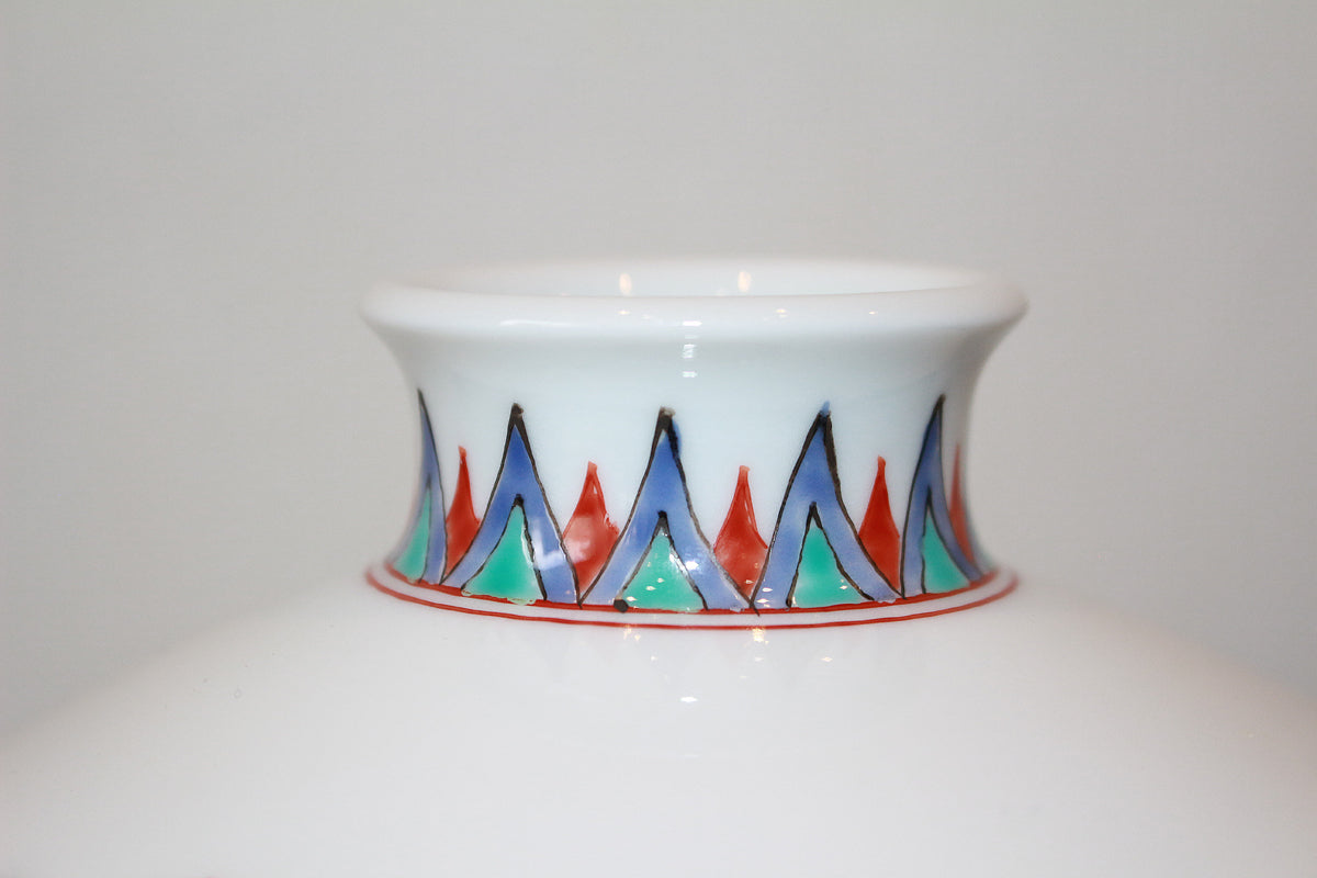 作品の区分:14代酒井田柿右衛門の作品には、ご本人が制作した「濁手」と、柿右衛門窯の工房で制作された「窯物」があります。本人の作品は市場に出回ることが少なく、非常に高価です。