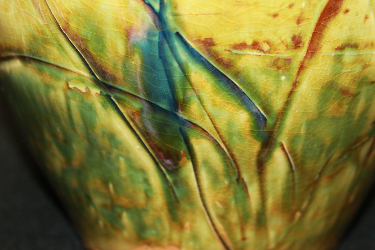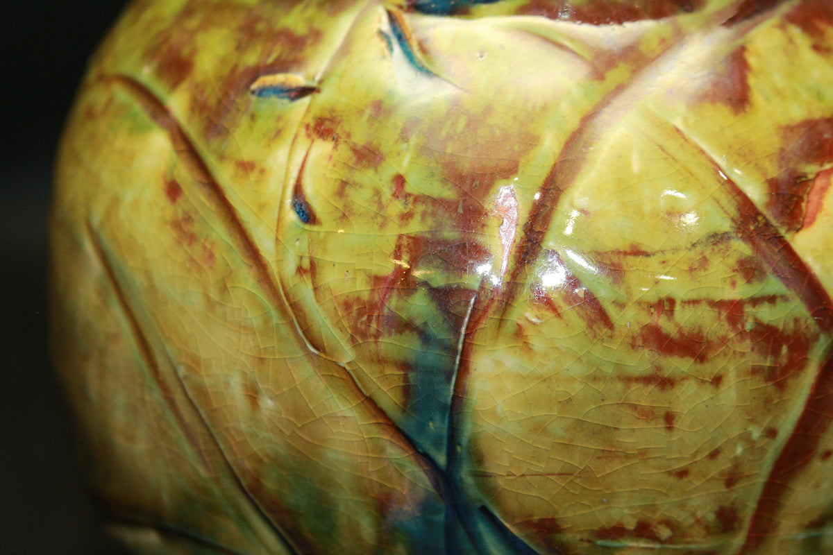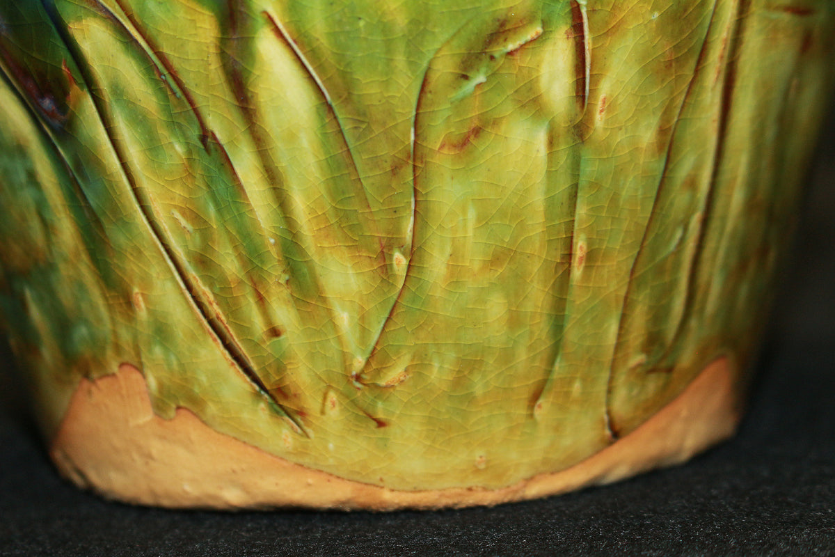 魯山人は「織部」を「於里扁」と表記していました。この表記には「人が暮らす里のあたりにおいて」という深い意味が込められているとされ、作品に一層の奥行きを与えています。