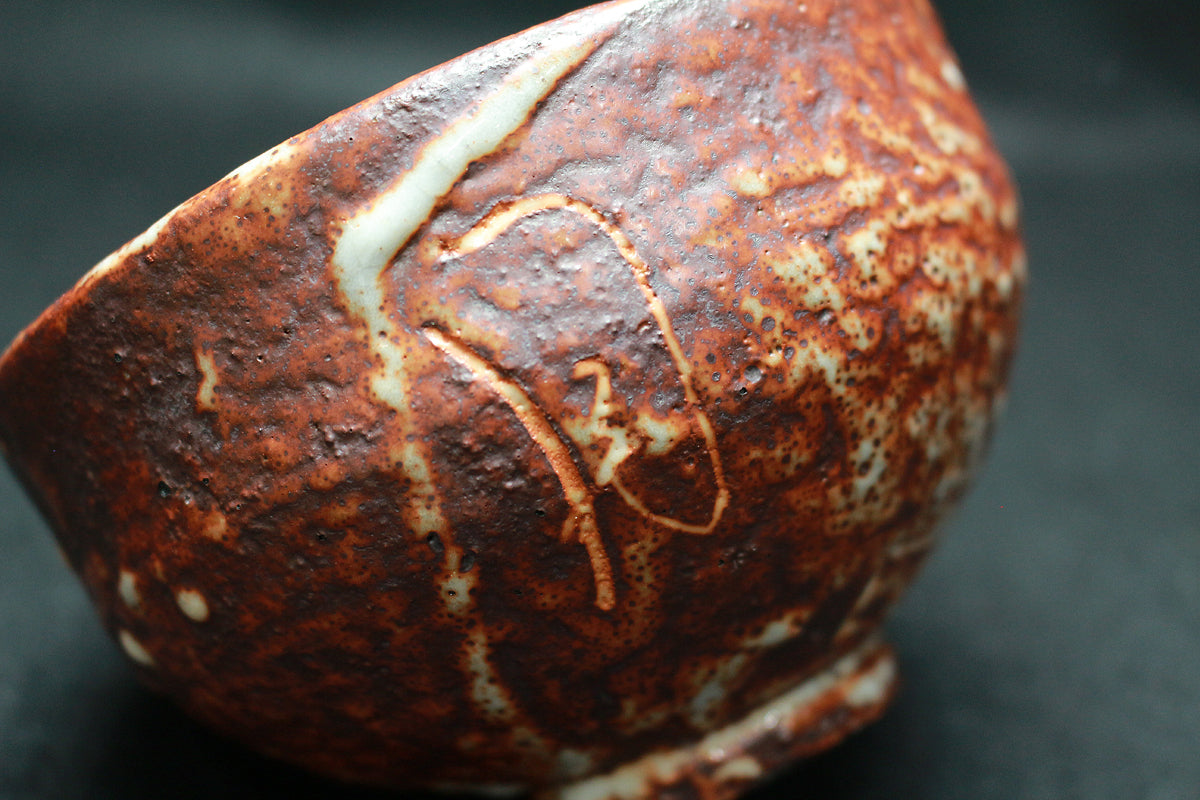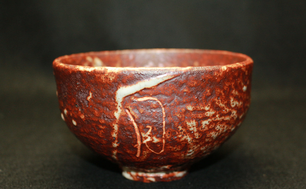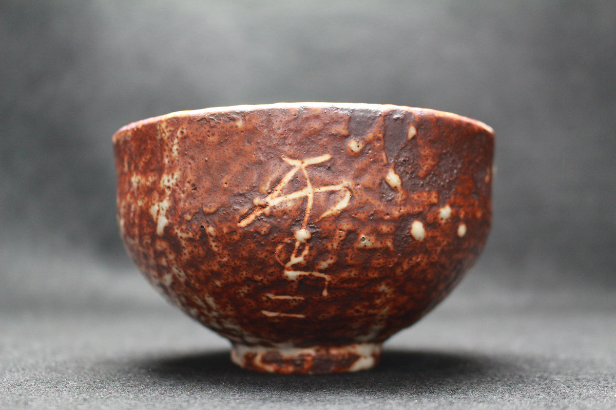 26124 北大路魯山人 鼡志野文字入茶碗(雪月花・黒田識) KITAOJI Rosanjin