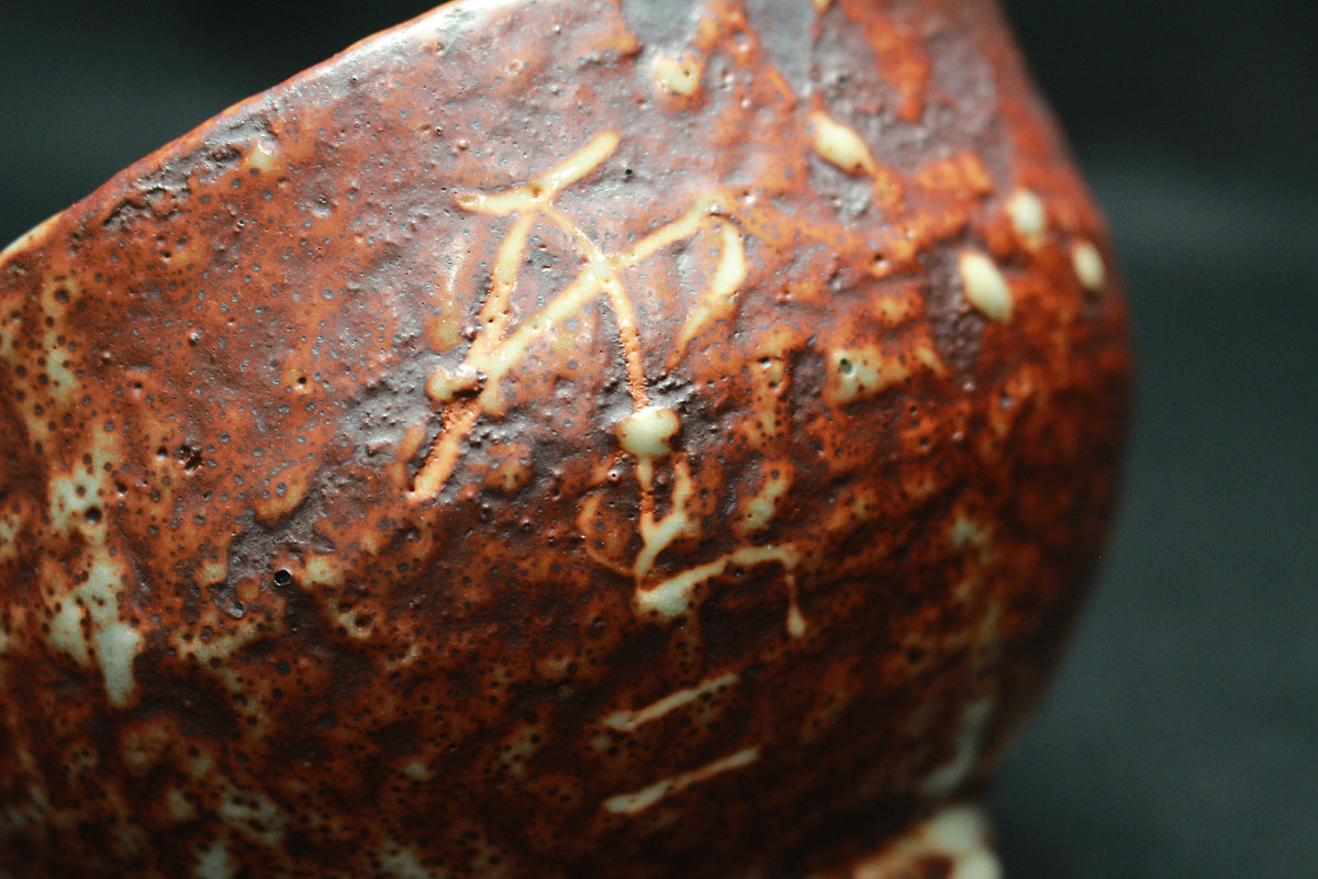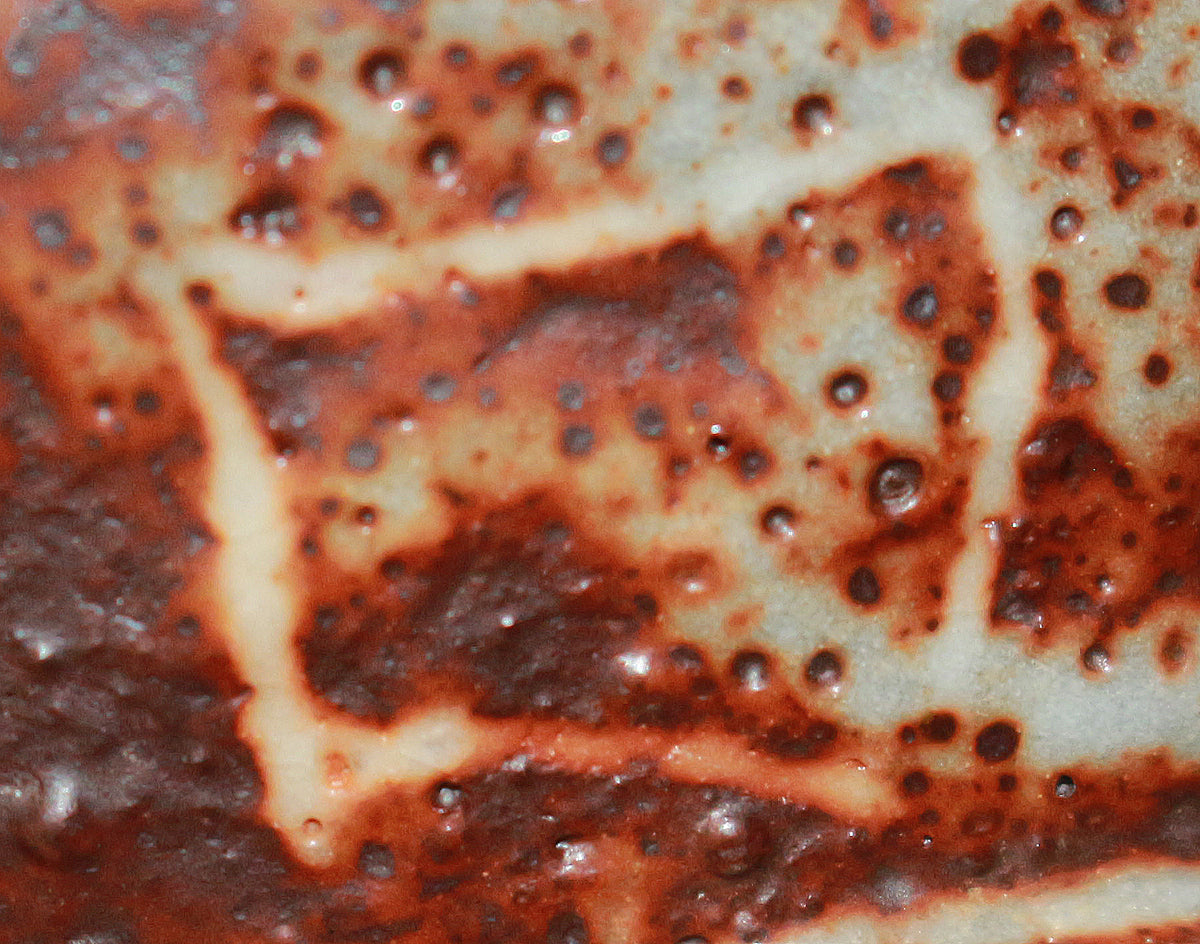 不出世の芸術家と謳われ、陶芸のみならず篆刻、漆芸、書などの分野においてその非凡な才能を発揮。 数々の名作と伝説を世に残した偉大なる総合芸術の巨匠 北大路魯山人の作品。紅志野の制作には鼠志野の技法が用いられており、紅と白の強いコントラストが魯山人の力強い線刻を一層際立たせています。