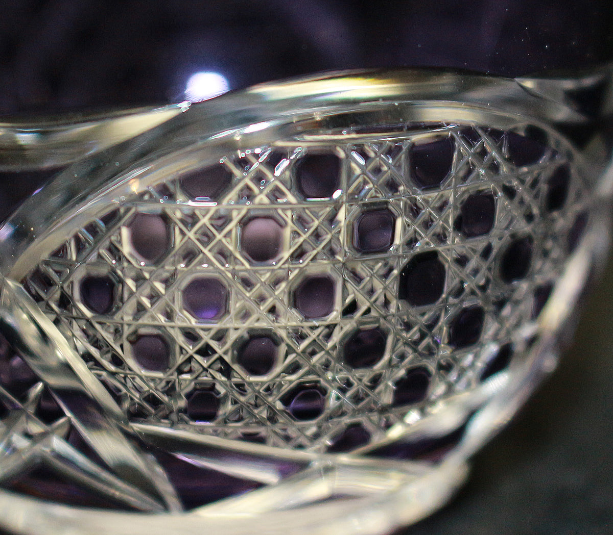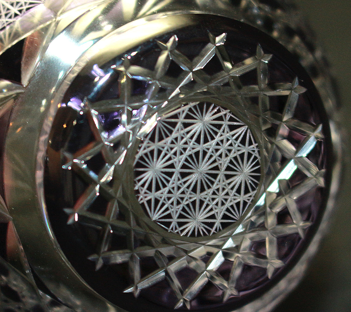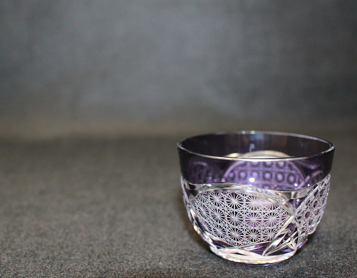 紋様以外にも華硝の江戸切子の大きな特徴となっていることがあります。それはすべての工程を手作業を行うということです。その手作業の工程で最も重要なのが“手磨き”という工程です。ほとんどの工房では“磨き”という工程で硫酸・フッ化水素等を使用した“酸磨き”を採用していますが、華硝ではこの磨きの工程も手作業で行います。酸磨きは大量生産に向いた工程ではありますが、それに使用される薬品は劇薬で地球環境に悪いだけでなく、カットの表面が解けて大切な輝きが失われてしまうのです。ガラス本来の輝きと繊細な紋様の美しさが調和した“本物”の江戸切子を皆様にお届けするために、華硝はこのような誇りとこだわりをもって創作しつづけているのです。