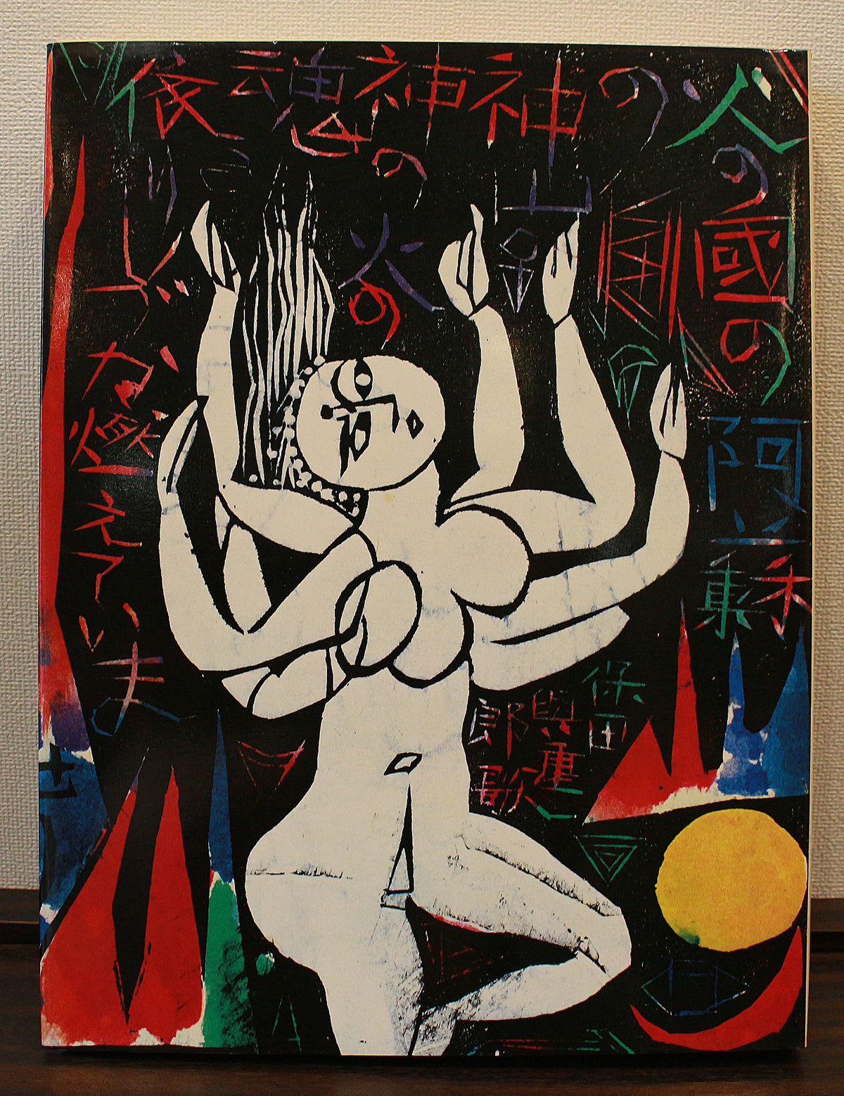 「炫火頌(かぎろいしょう)」は、棟方志功の初期からの支持者である文芸評論家・保田與重郎の短歌を取り入れて制作された、全32編からなる大連作です。制作は昭和23年頃から晩年まで続けられ、一人の歌人の短歌をテーマにした連作の中では、最も長期に渡っています。志功は、炫火頌について、「思う存分遊びたわむれ、天上に遊ぶ思いで作った」と語っており、詩画一致を目指した志功の代表的な名品です。