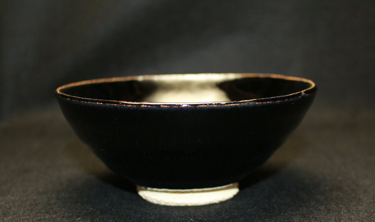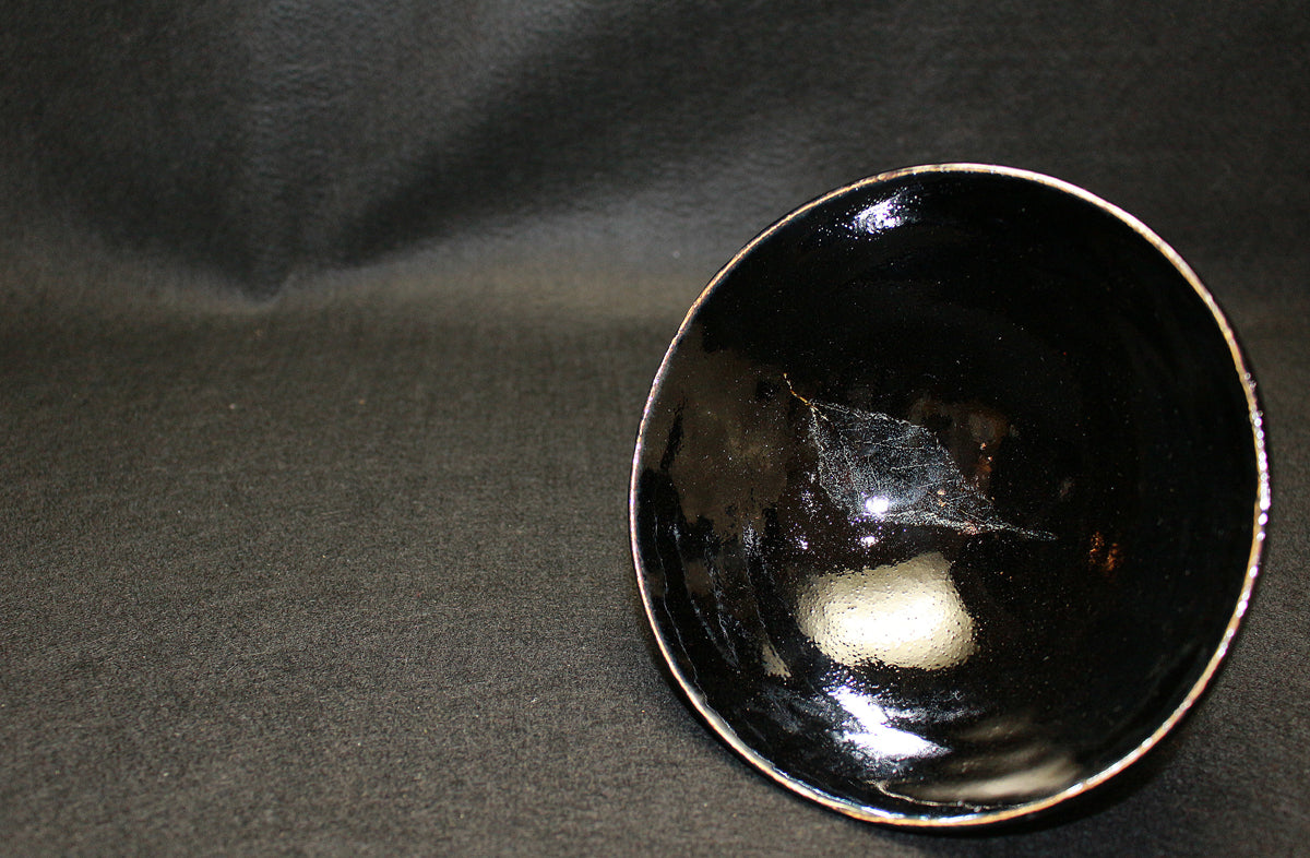 木ノ葉天目茶碗は、中国の吉州窯で焼かれたものが有名で、黒い釉薬の中に黄色い木の葉が美しく浮かび上がるのが特徴です。木村盛和は、この伝統的な木ノ葉天目を独自の技法で再現し、深みと重厚感のある作品を数多く生み出しました。彼の作品には、一つ一つの葉脈がはっきりとした繊細な木ノ葉が表現されており、高度な技術がうかがえます。