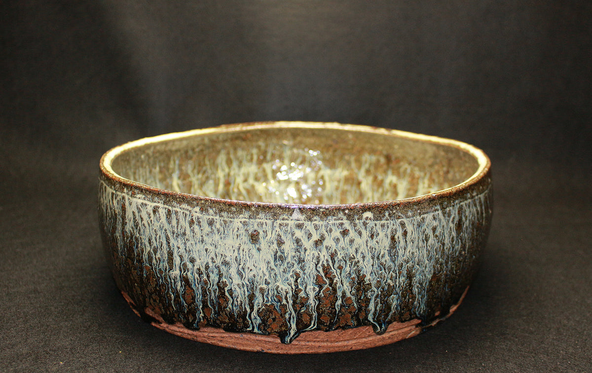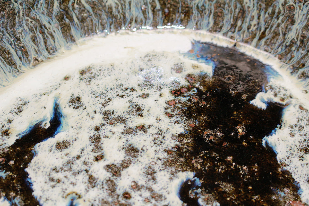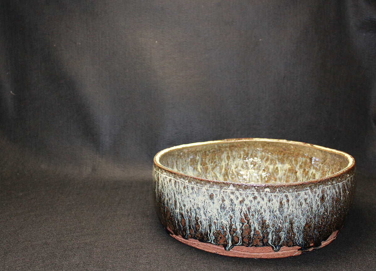 それは粗目で鉄分が多い自家製粘土が釉薬との相性により発色と質感を豊かにし、釉薬の美しさはもちろんのこと、その上からでも豪快な土味をみることができるからです。