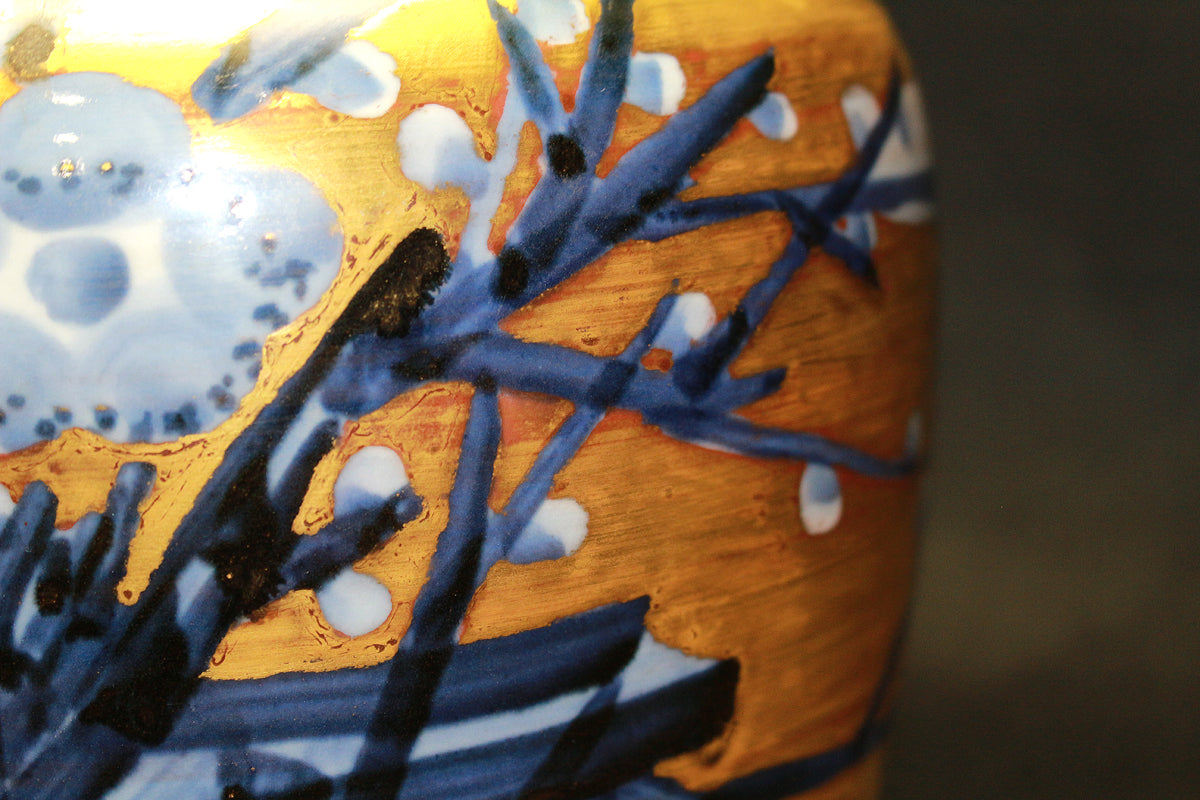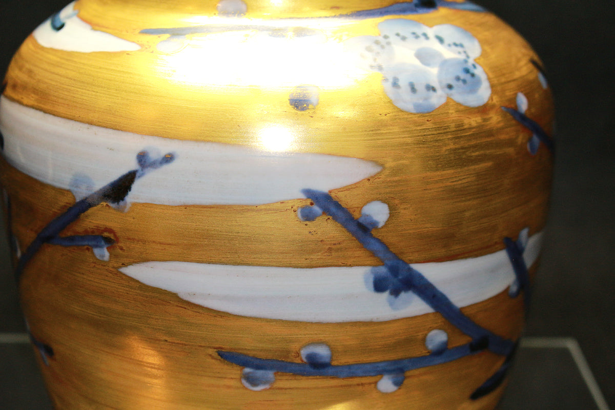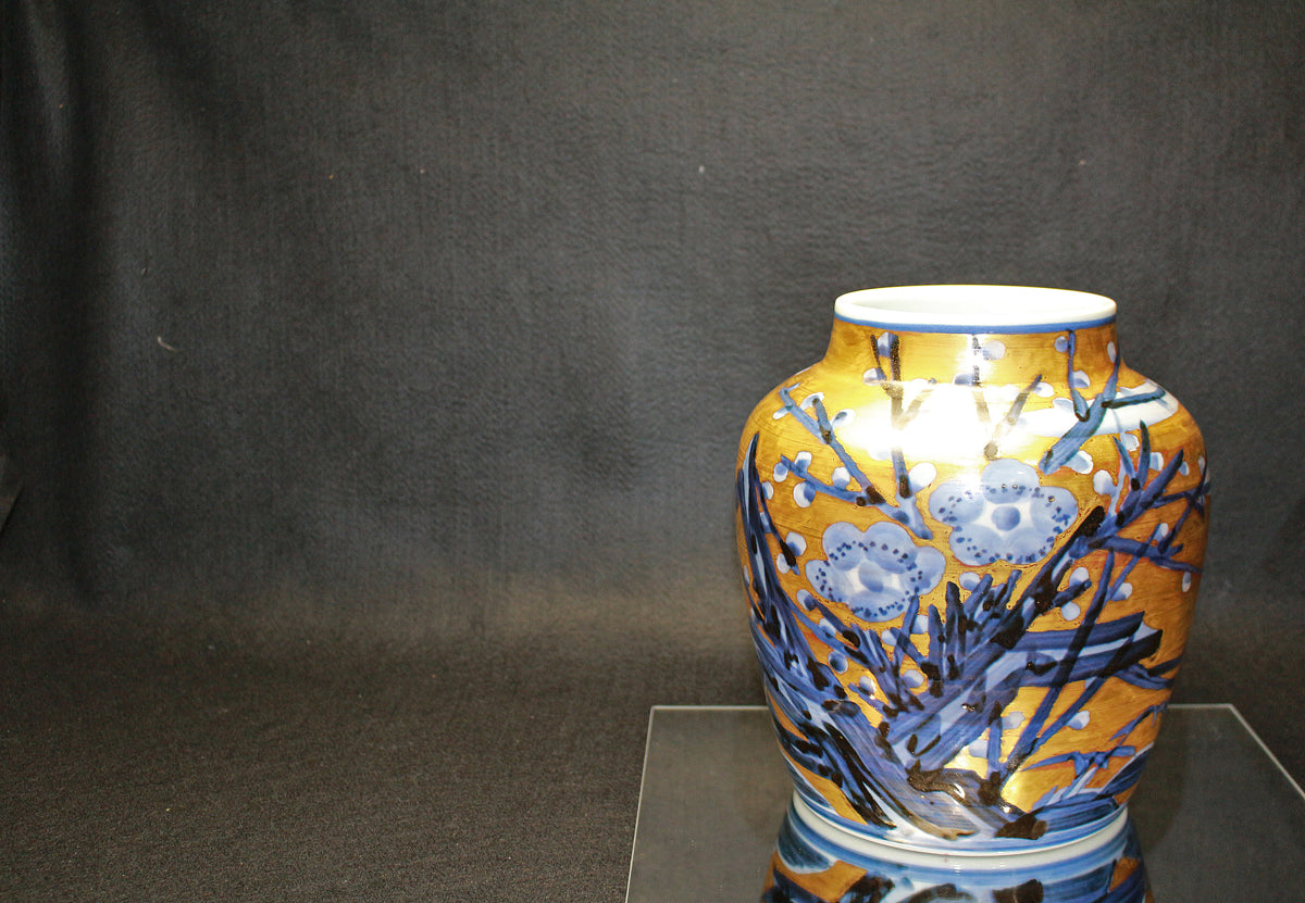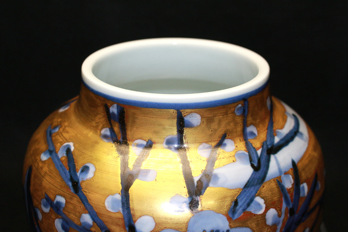 26270 人間国宝 近藤悠三 梅染附金彩花瓶 KONDO Yuzo