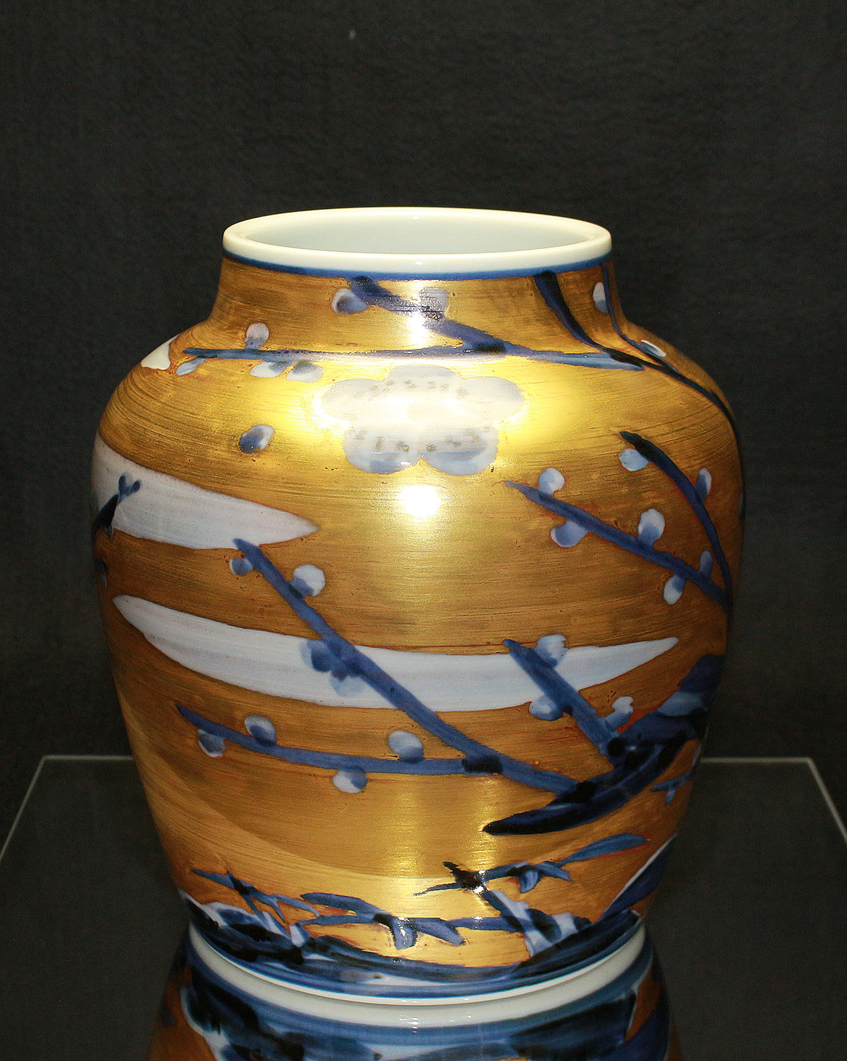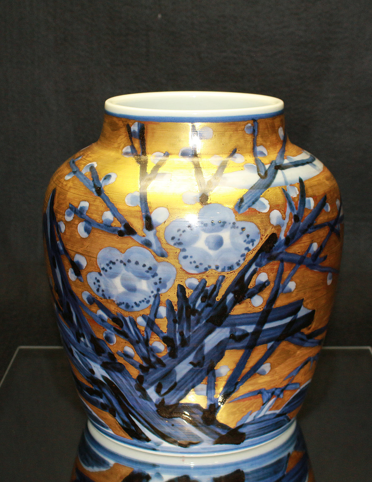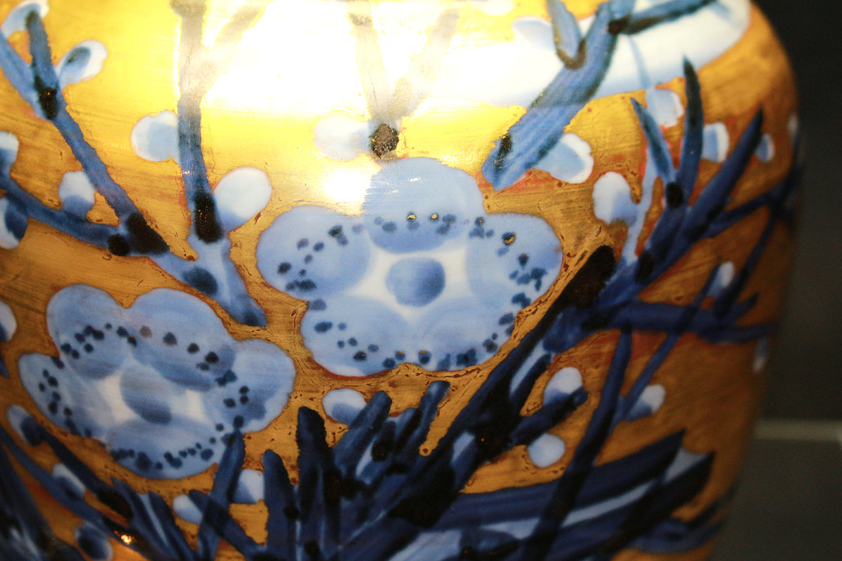 26270 人間国宝 近藤悠三 梅染附金彩花瓶 KONDO Yuzo