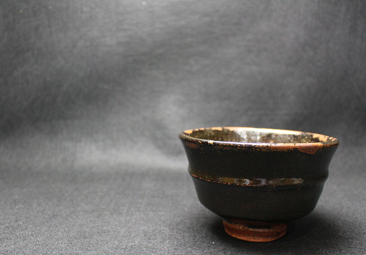 26301 人間国宝 浜田庄司 黒釉胴紐茶盌 HAMADA Syoji