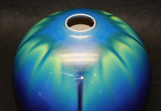 26269 人間国宝 3代徳田八十吉 碧明耀彩壷 TOKUDA Yasokichi
