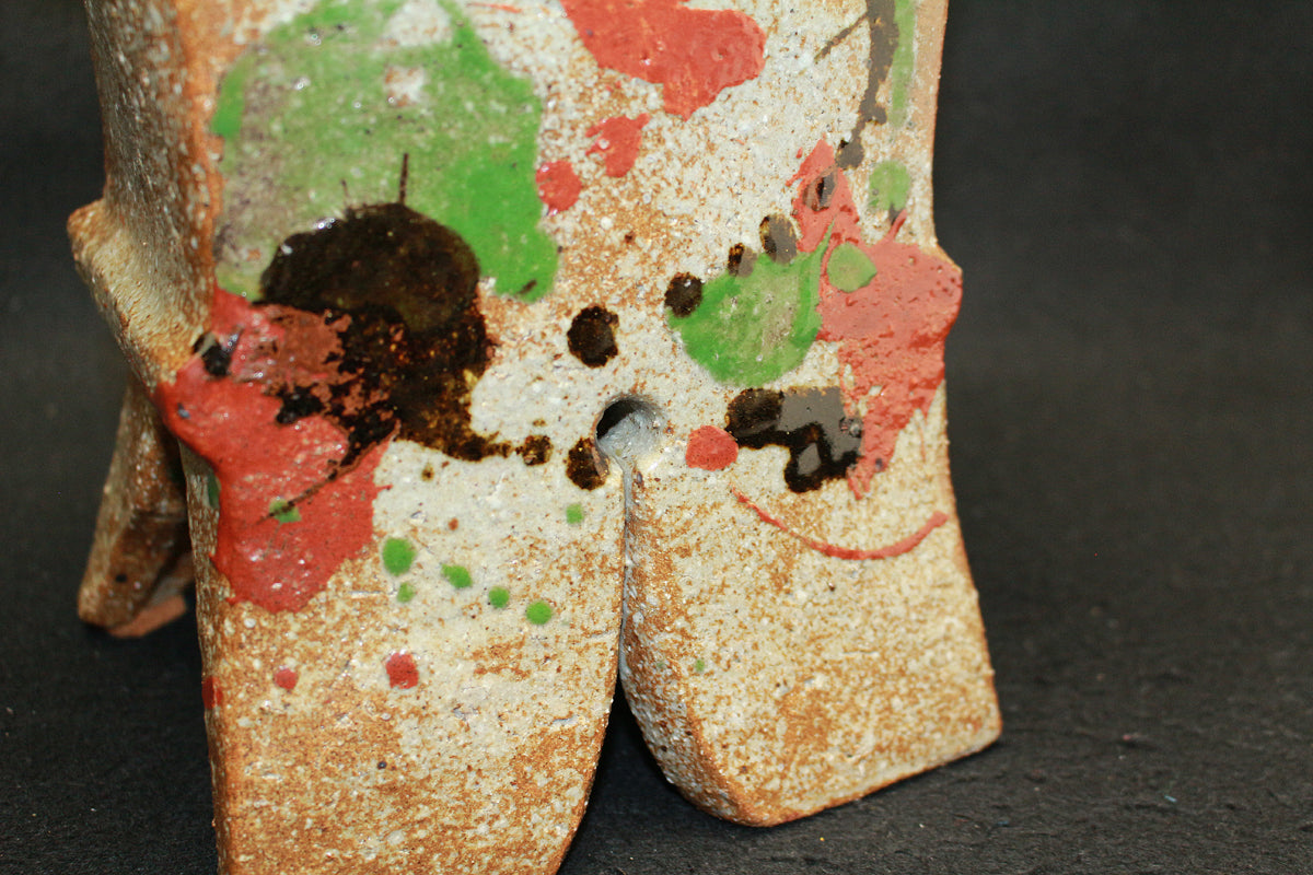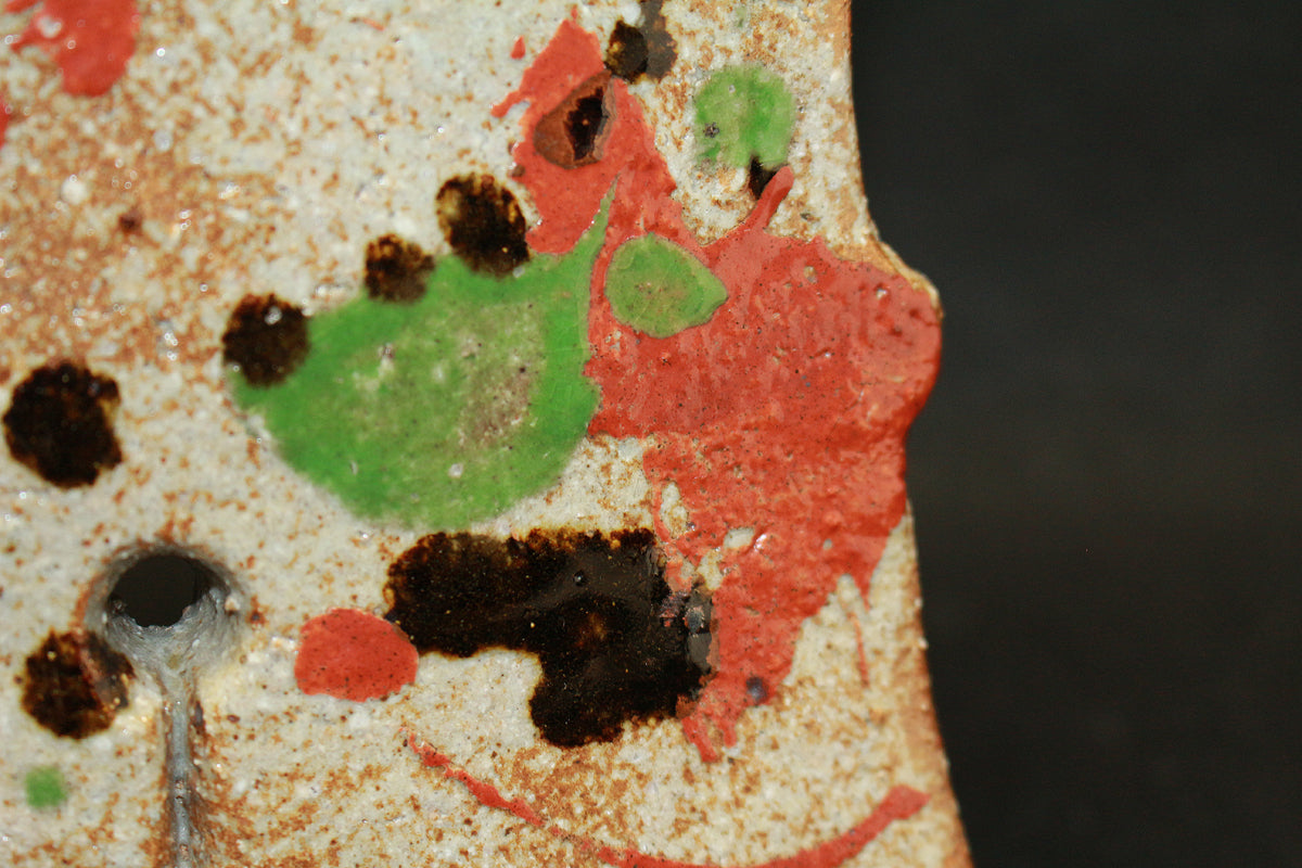 25984 河井寛次郎 三色扁壷(紅葩識・個展出品作) KAWAI Kanjiro