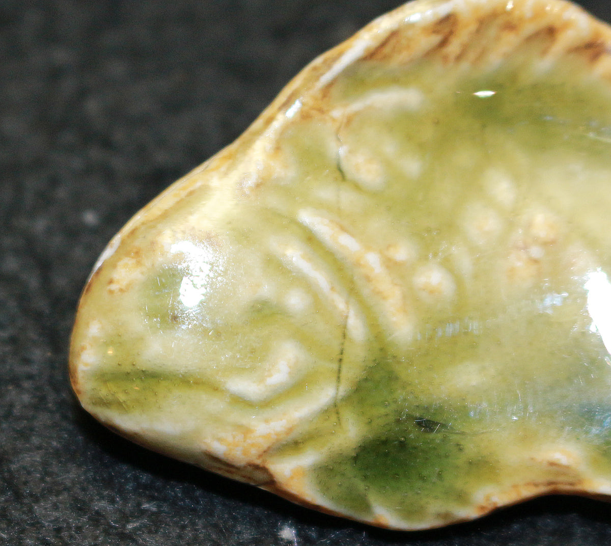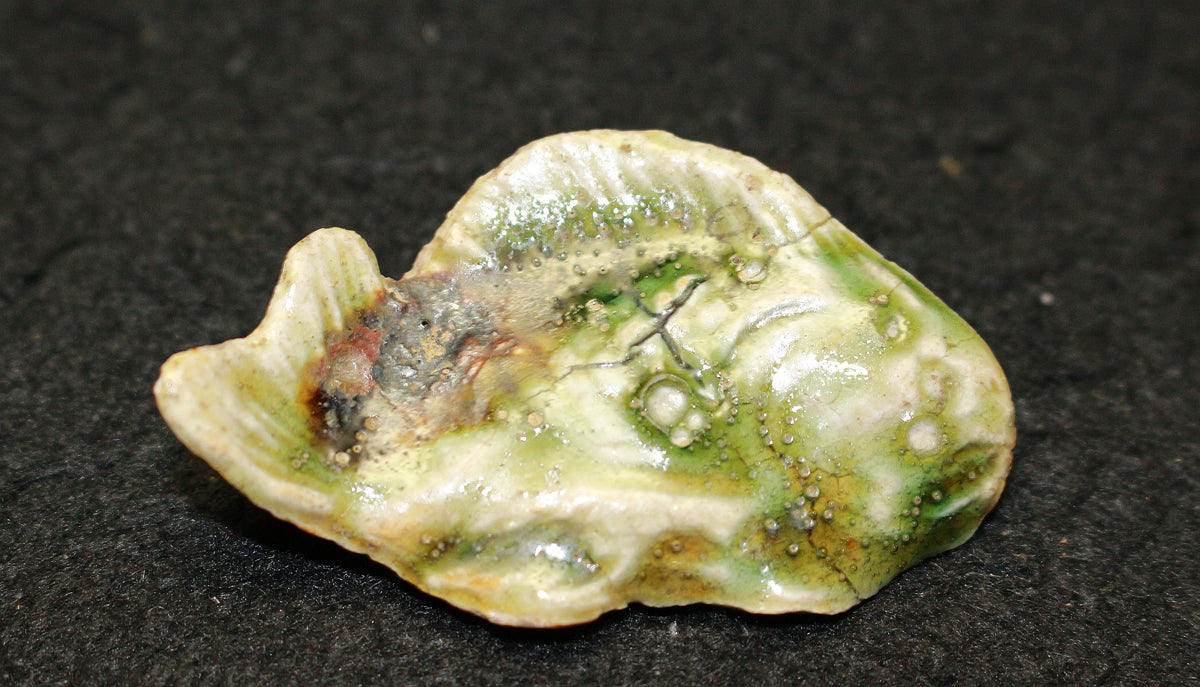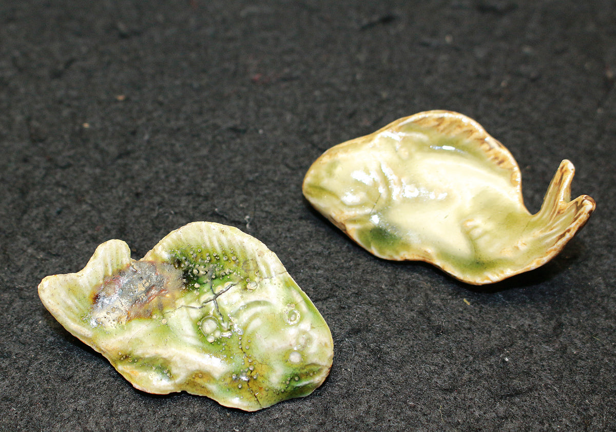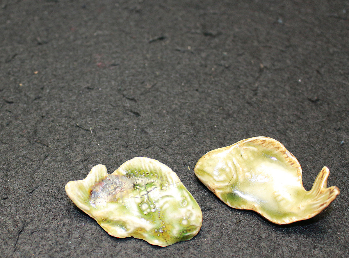 型物は魯山人先生が作った石膏型をもとに量産されたものであるが、水面から跳びだしてきたような躍動感のある尾びれと、生命感を感じさせるしっかりとした眼が特徴となっており、魚をモチーフにした作品を様々残された魯山人だからこその拘りが感じられる。