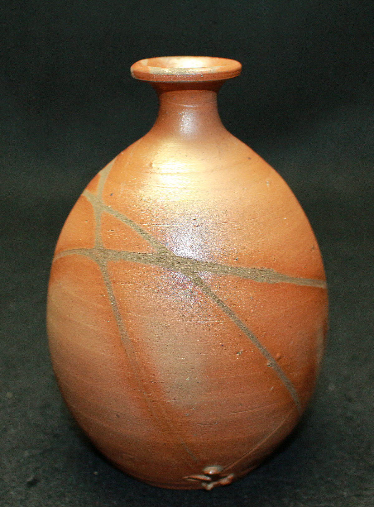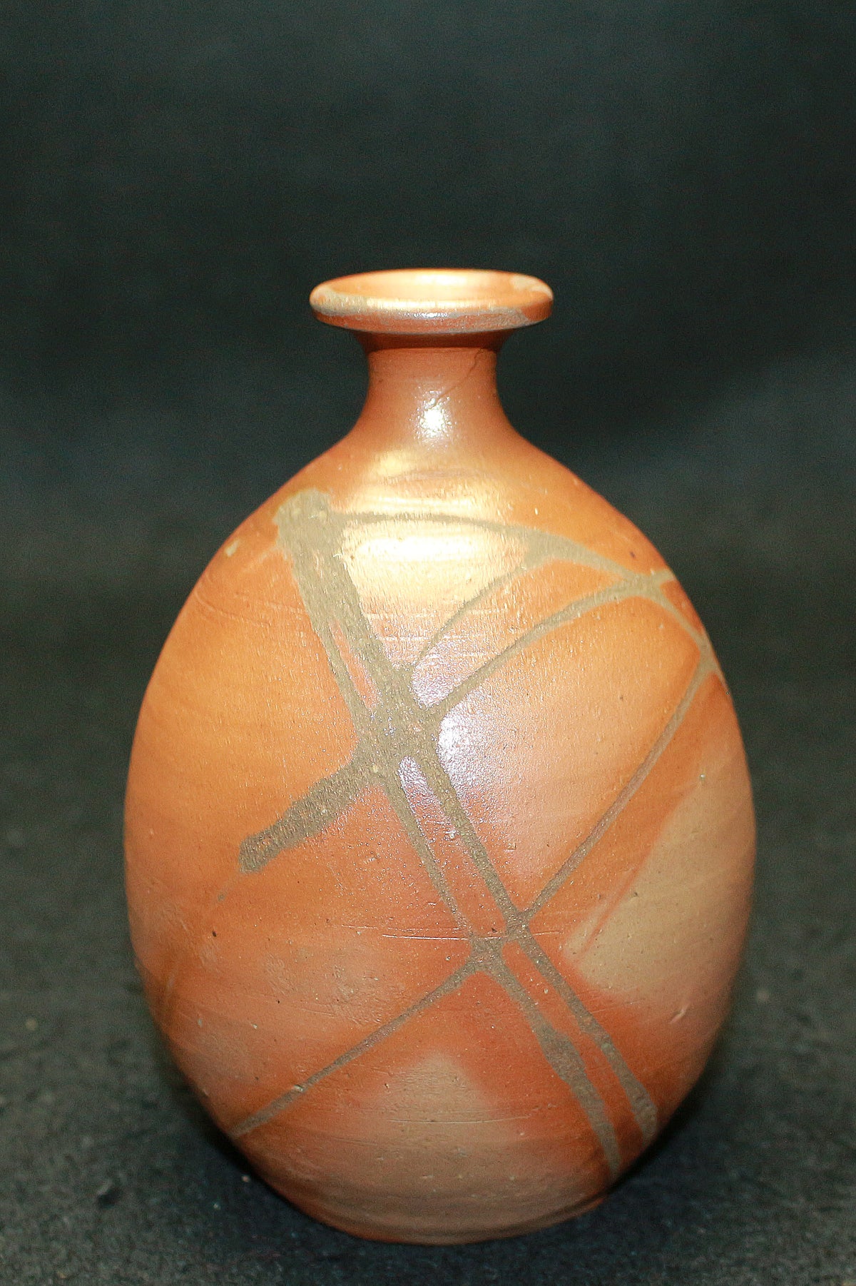26085 人间国宝 藤原庆备前清酒瓶 藤原庆