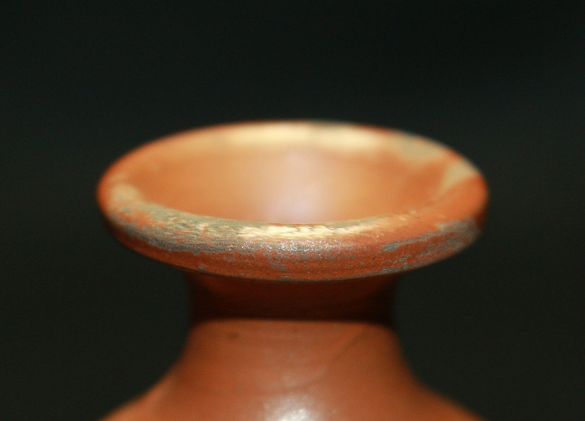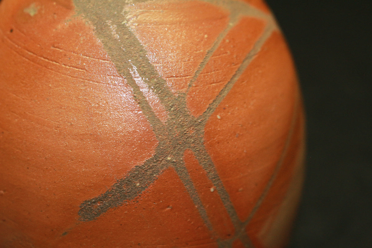 尽管藤原圭在陶艺界起步较晚,已是四十岁高龄,但他却是继兼重丰之后第二位获得国家认证并取得技术传承资格的陶艺家。在师从兼重丰和北大路鲁山人期间,他也致力于复兴古代备前烧,并通过自身的磨练,发展出与兼重丰强劲粗犷的风格截然不同的简洁质朴的作品。藤原圭作为一位陶艺大师,在国际舞台上取得了成功,并确立了其作为备前烧代表人物的地位,最终被指定为日本重要无形文化财产。无需过多赘述,只需仔细欣赏照片,便能充分领略这件作品的魅力。其优美均衡的造型和其他特征赋予了它精致优雅的气质。这件作品完美地诠释了备前烧简洁质朴的精髓。