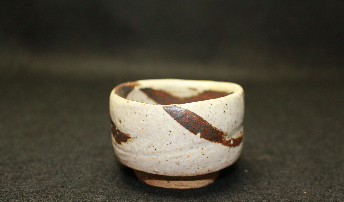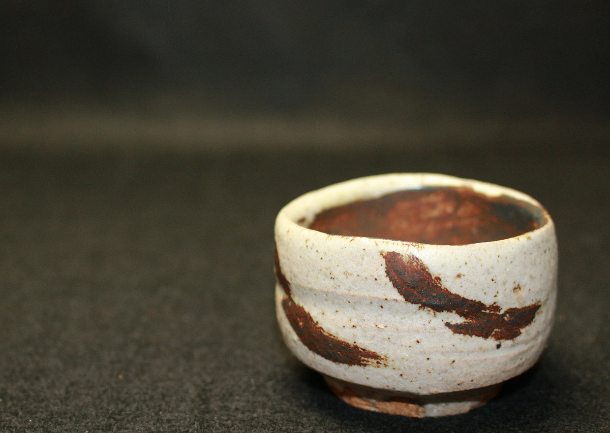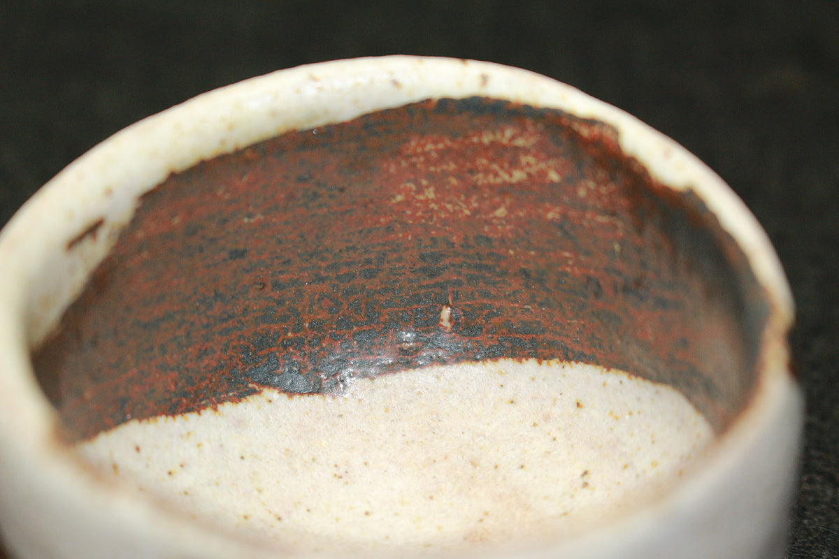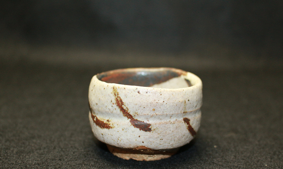 26130 人間国宝 金重陶陽 灰釉鉄紋酒呑(於ハワイ大学・晃介識)) KANESHIGE Toyo