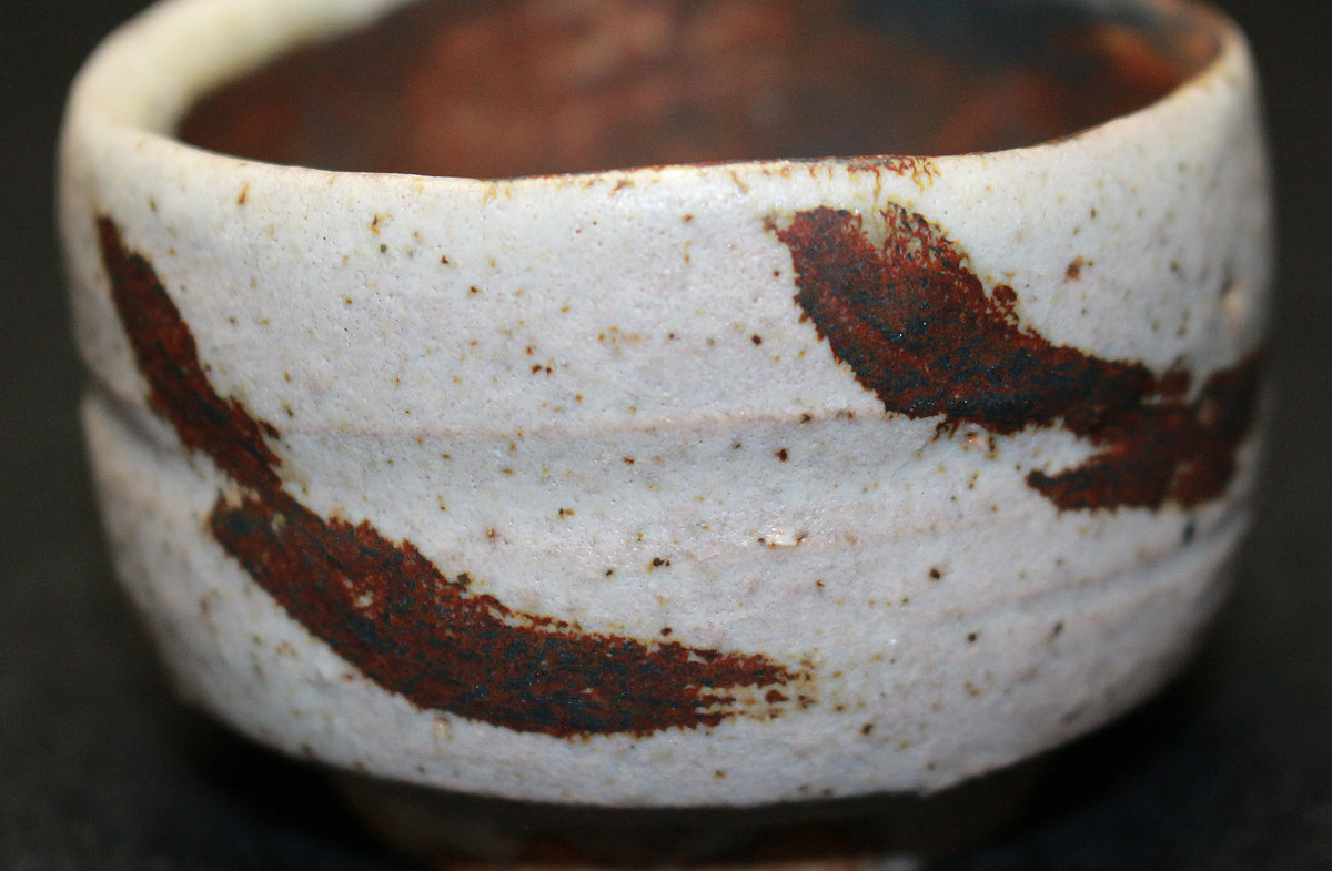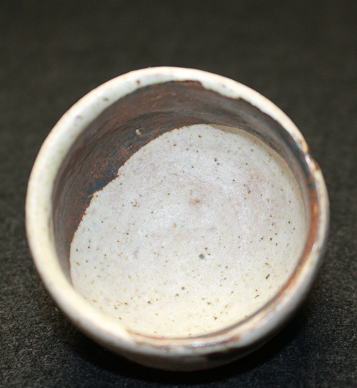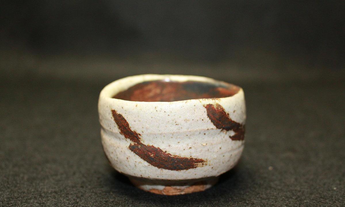 26130 人間国宝 金重陶陽 灰釉鉄紋酒呑(於ハワイ大学・晃介識)) KANESHIGE Toyo