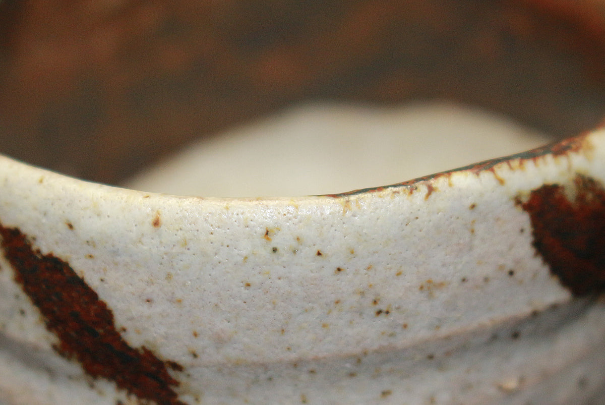 金重陶陽が手掛けた酒呑は、力強い窯変や、土の柔らかさを強調した作風が特徴として挙げられます。1950年代初期の作品には、北大路魯山人の影響を受けた、ゆったりとした轆轳の味わいが感じられるものもあります。晩年の作品では、形や振りが大きく、重厚な存在感を放つものも多いです。