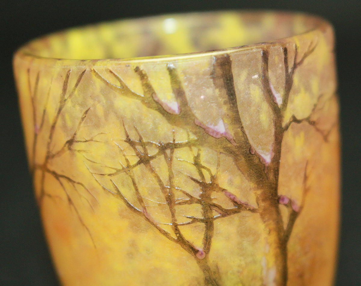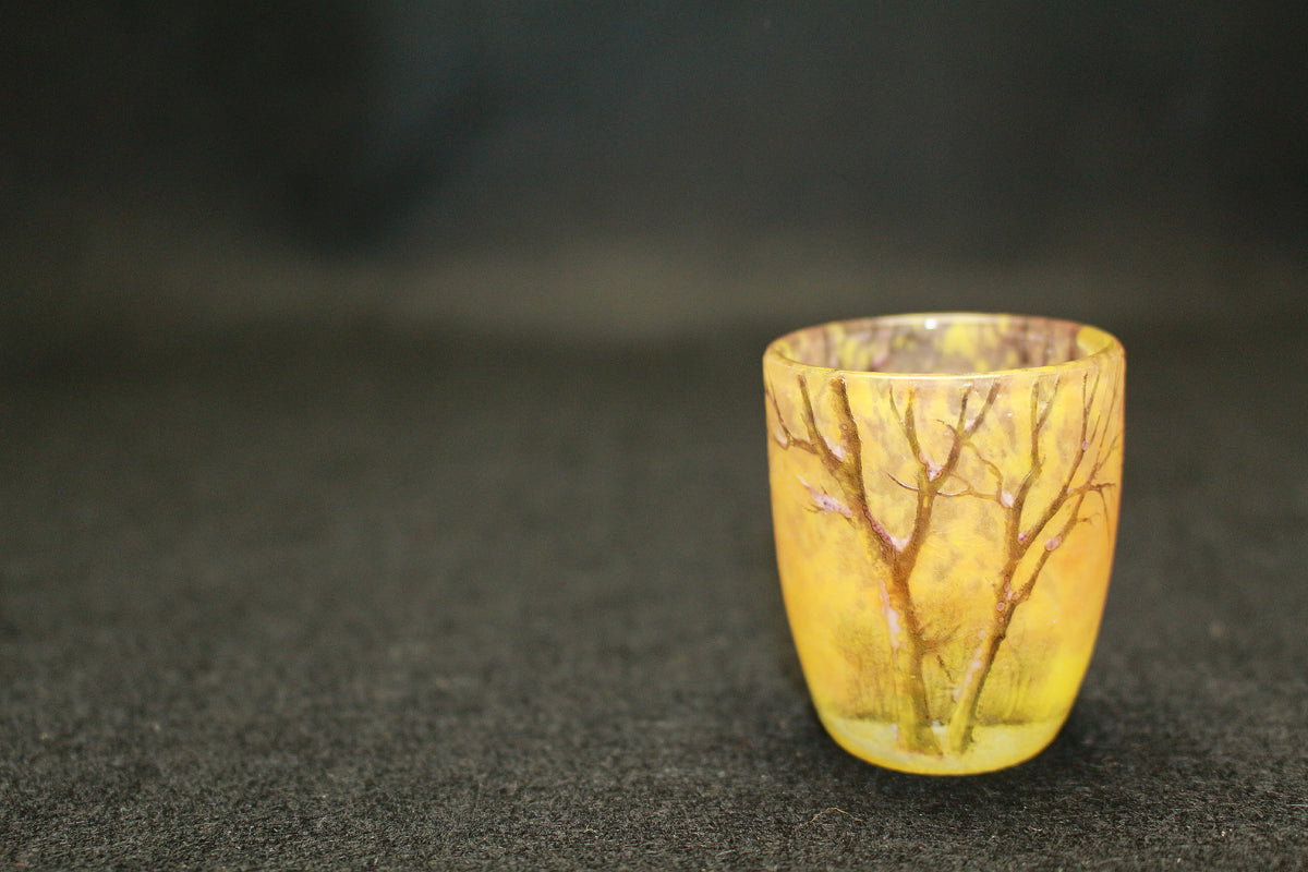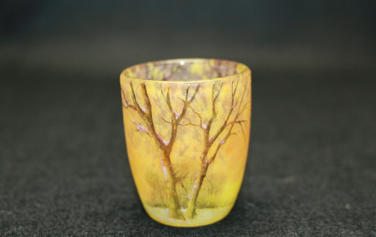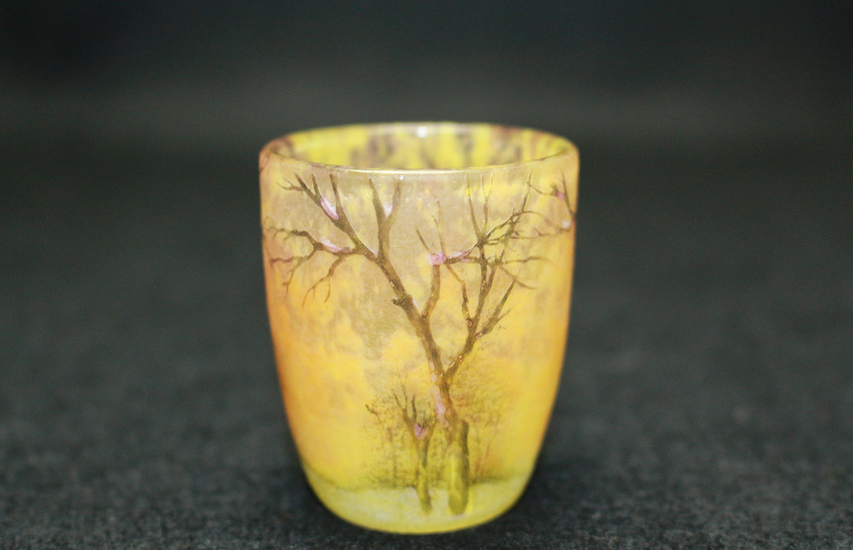 フランスのアールヌーヴォー芸術期を代表する人物(兄弟)であり、かのエミール・ガレと並び評され活躍した世界的ガラス芸術作家【ドーム・ナンシー(兄弟)】作。 20世紀初頭に作成され、制作期間の短さから、希少作となった盃です。